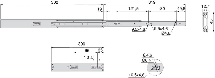• Schubladenführungen mit Kugellager, Vollauszug und Softclose mit Länge 300mm.