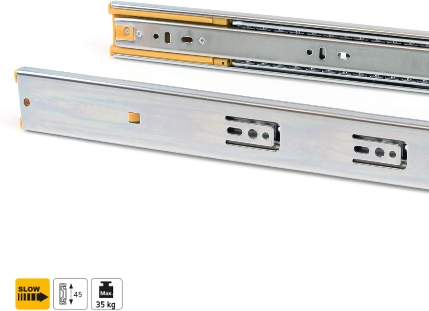 Emuca 3051005 Set Schubladenführungen, Vollauszug mit Rollen gedämpftes Scharnier 45mm x 300mm, Lot