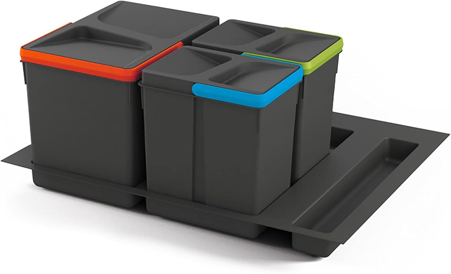 Emuca - Abfallsammler, Müllbehälter für zuschneidbaren Basis, Kit aus 2 Eimern mit höhe 266mm und Fa