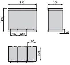 • Abmessungen: 52cm lang x 30cm breit x 44cm hoch. Um den Beutel an die quadratische Bauform des Behälters anzupassen, wird empfohlen, einen Beutel mit einem grösseren Fassungsvermögen als dem für den Behälter angegebenen Volumen zu verwenden.