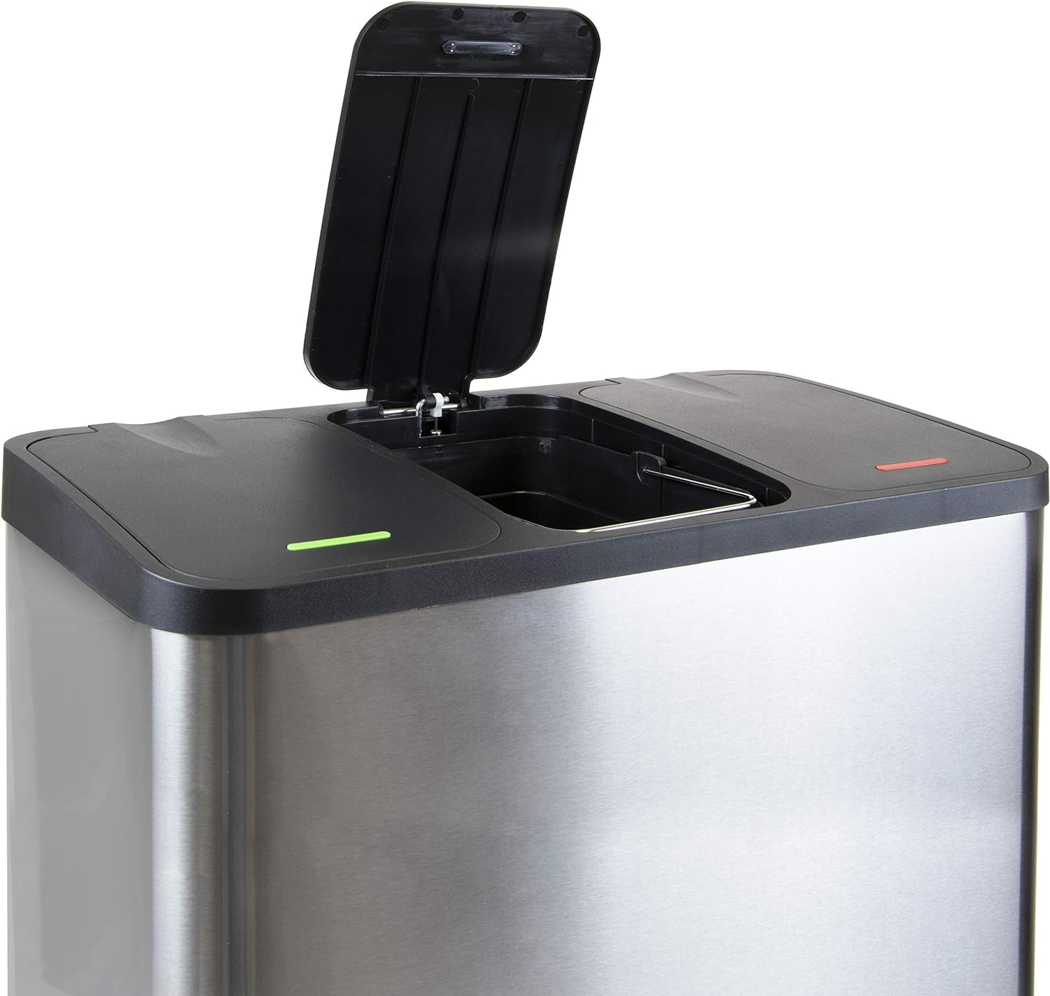Emuca - Aussenbehälter mit 3 Fächern à 9 Liter, Treteimer, Abfallsammler, Edelstahl 9L 3 Fächern, 9L