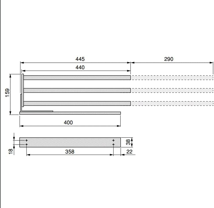 - Verfügt über drei Arme mit einer Länge von 440 mm, die um 90º gedreht werden können.