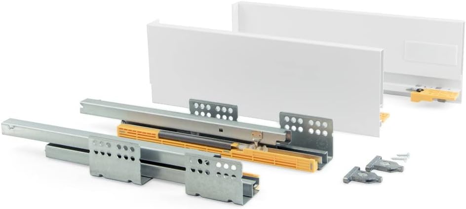 - Beinhaltet die Führungen für den vollständigen Auszug mit schliessen sanft, zwei Seitenteile und einen Satz Befestiger für die Vorderseite der Aussenschublade