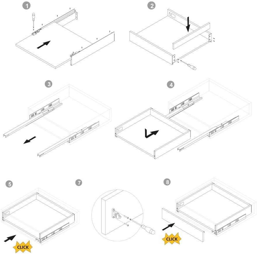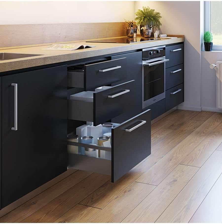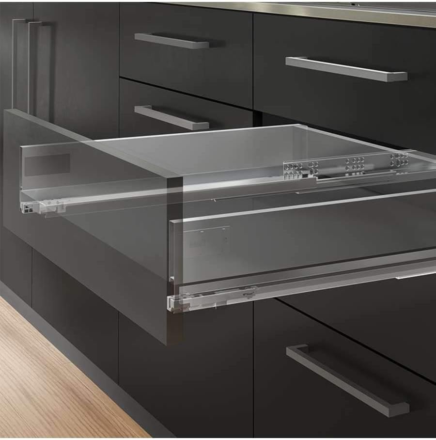 - Beschläge Kit erforderlich für die Montage einer Schublade mit einer Höhe von 93 mm und einer Tiefe von 500 mm, mit Ausnahme der Frontseite der Schublade in Modulen mit einer Breite von 600 mm und einer Seitendicke von 16 mm.