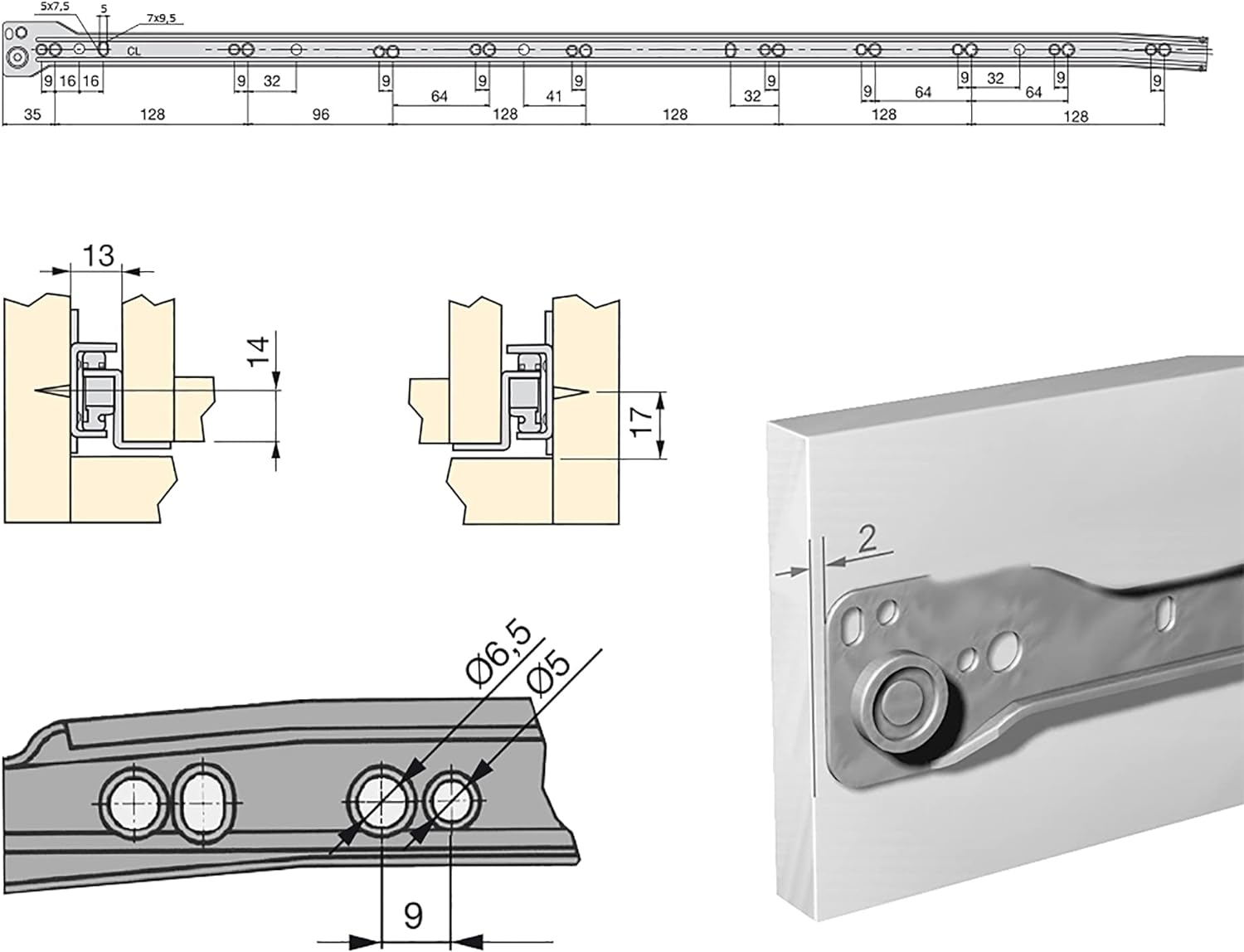 - Jedes Set beinhaltet 5 einzeln verpackte Sätze Schubladenführungen.