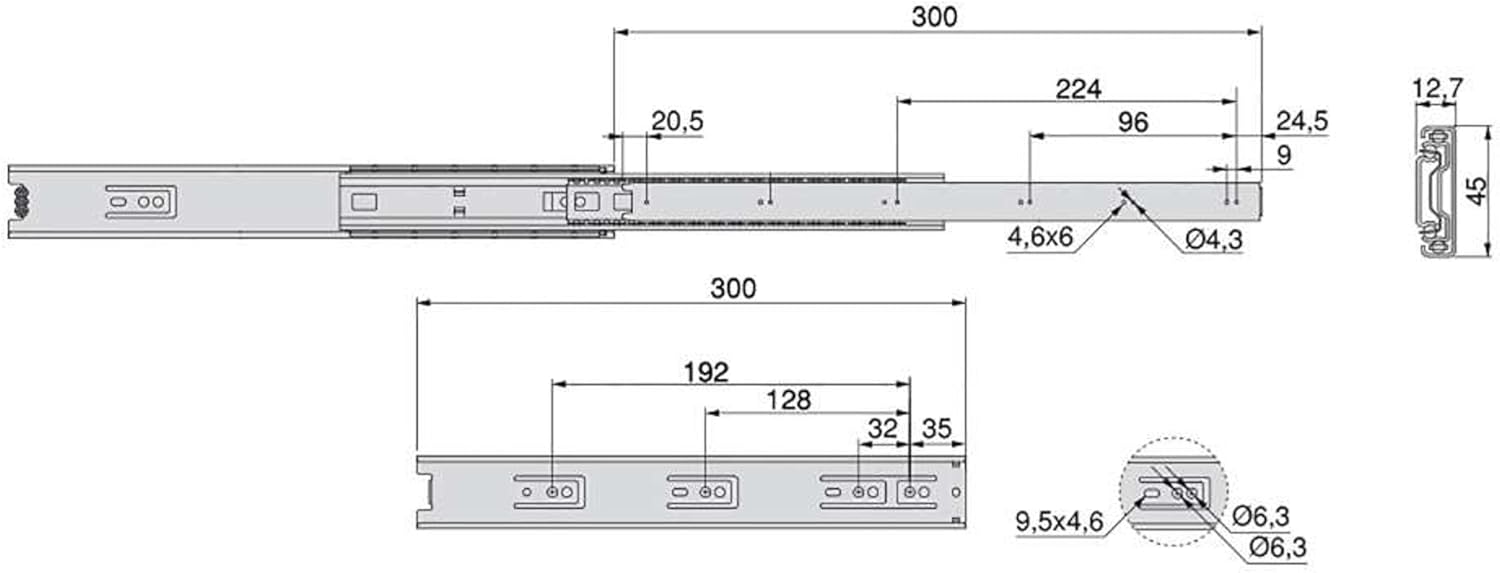 - Schubladenführungen mit Kugellager und Vollauszug mit Länge 300mm.