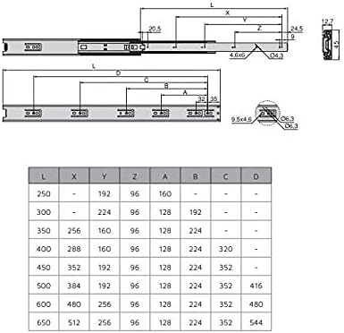 • Schubladenführungen mit Kugellager und Vollauszug mit länge 450mm.
