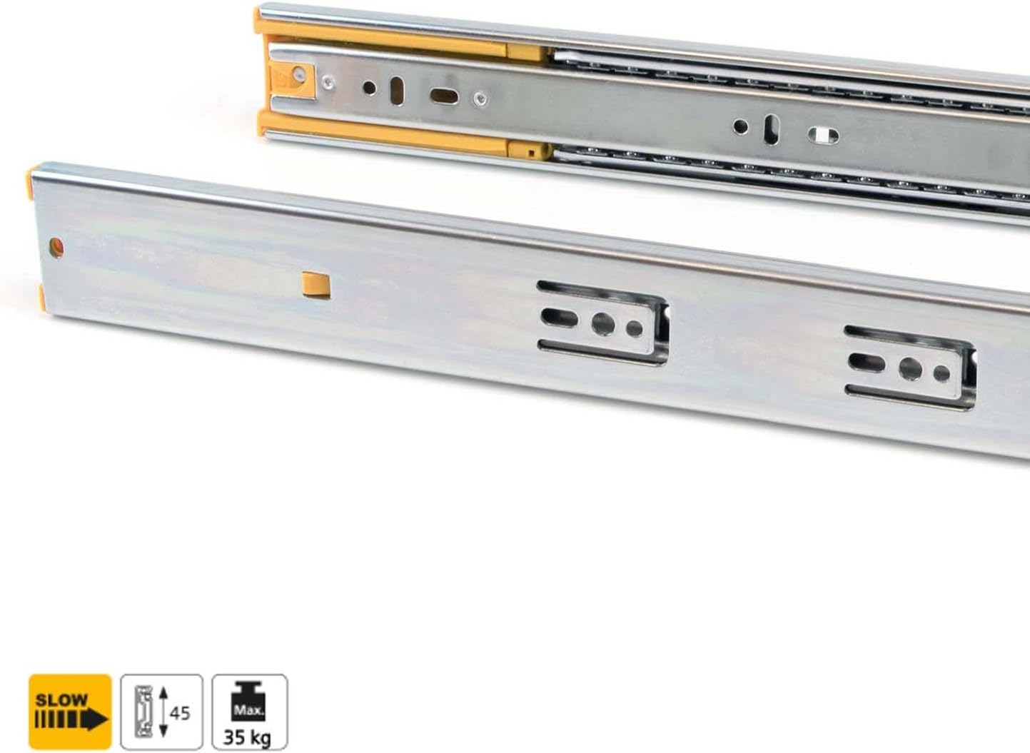 Emuca Schubladenführungen, Vollauszug mit Rollen gedämpftes Scharnier 45mm x 400mm, 5 Sets (10 Stück