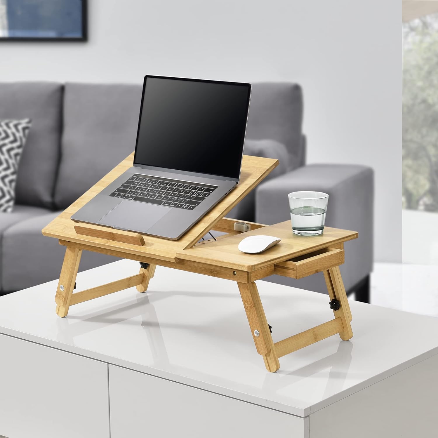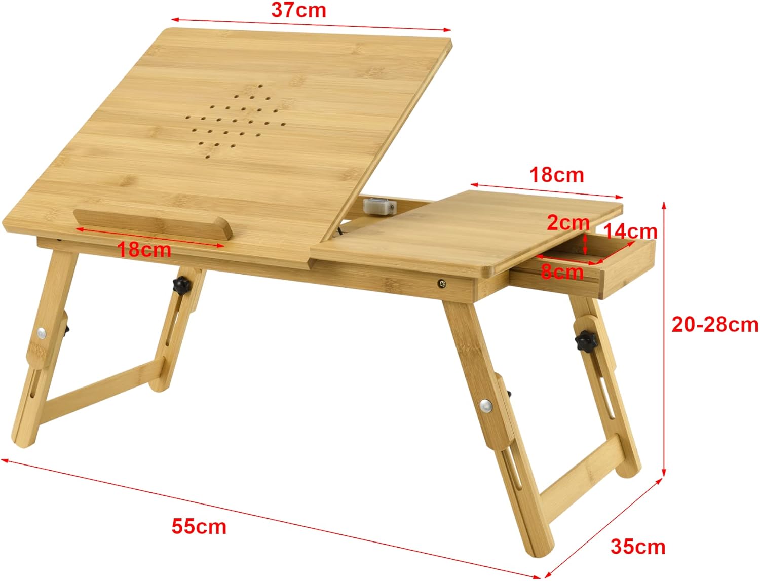 - Der klappbare und höhenverstellbare Notebooktisch kann vielseitig verwendet werden. Er eignet sich perfekt als Tisch im Bett, auf dem Sofa oder als Stehpult. Die Schublade bietet einen zusätzlichen Stauraum. Ausserdem kann er als Frühstückstisch genutzt werden, um bequem im Bett seine Mahlzeit zu geniessen.