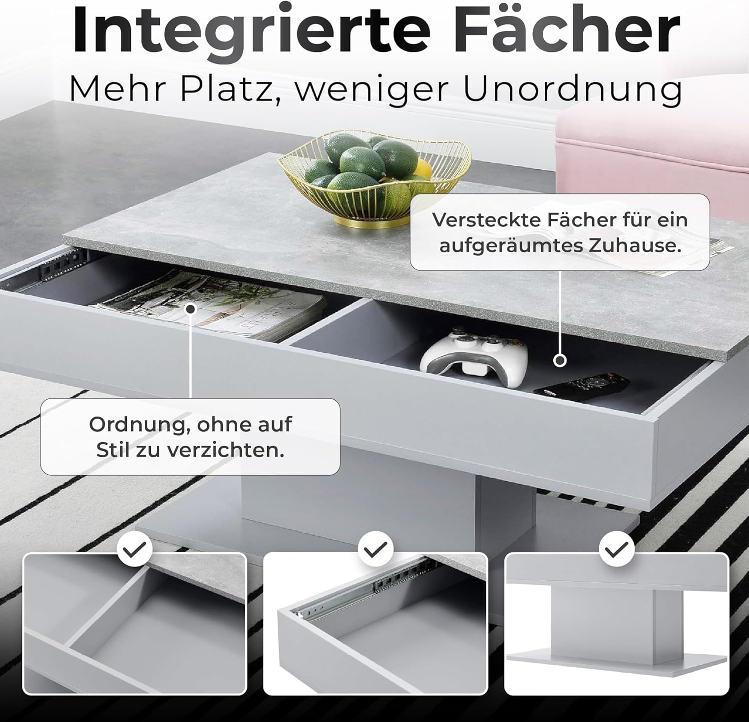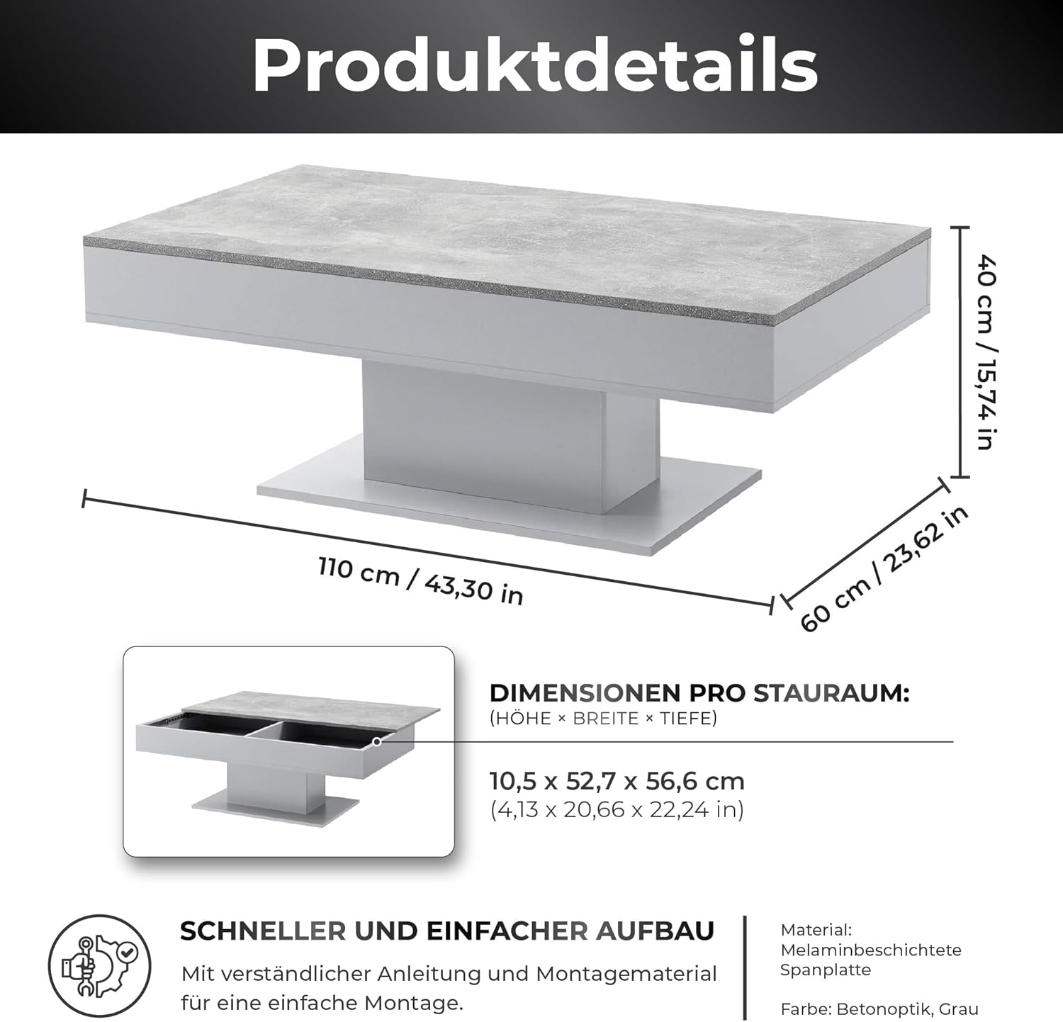 - Stilvoller und zeitloser Hingucker in Ihrer Wohnung - Schiebeplatte zum nutzen der integrierten Staufächer - Leicht zu reinigen mit feuchtem Baumwolltuch - Schneller und einfacher Aufbau