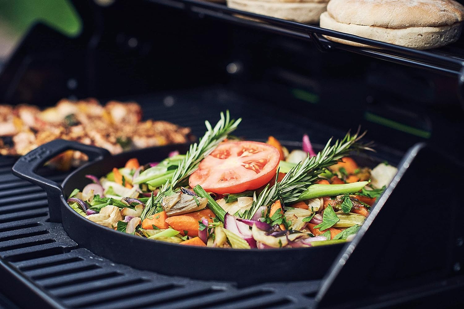 - Produkt 2: Extra hoher Rand (vier cm) für bequemes Wenden des Grillguts in der Pfanne