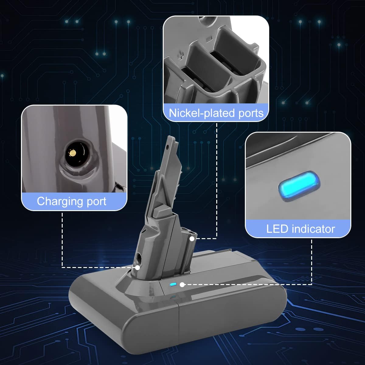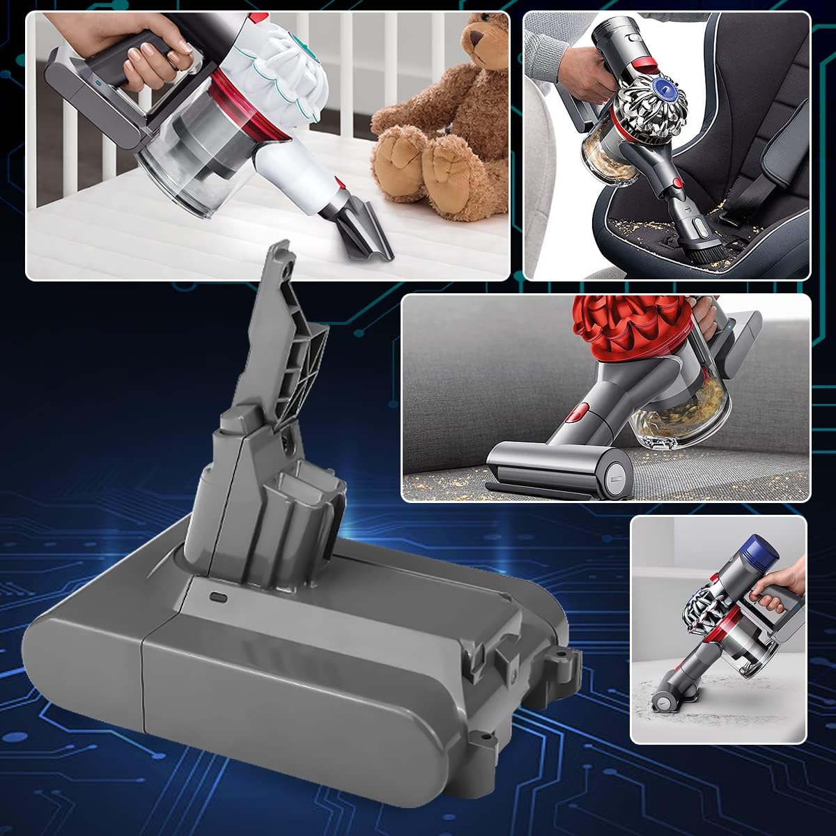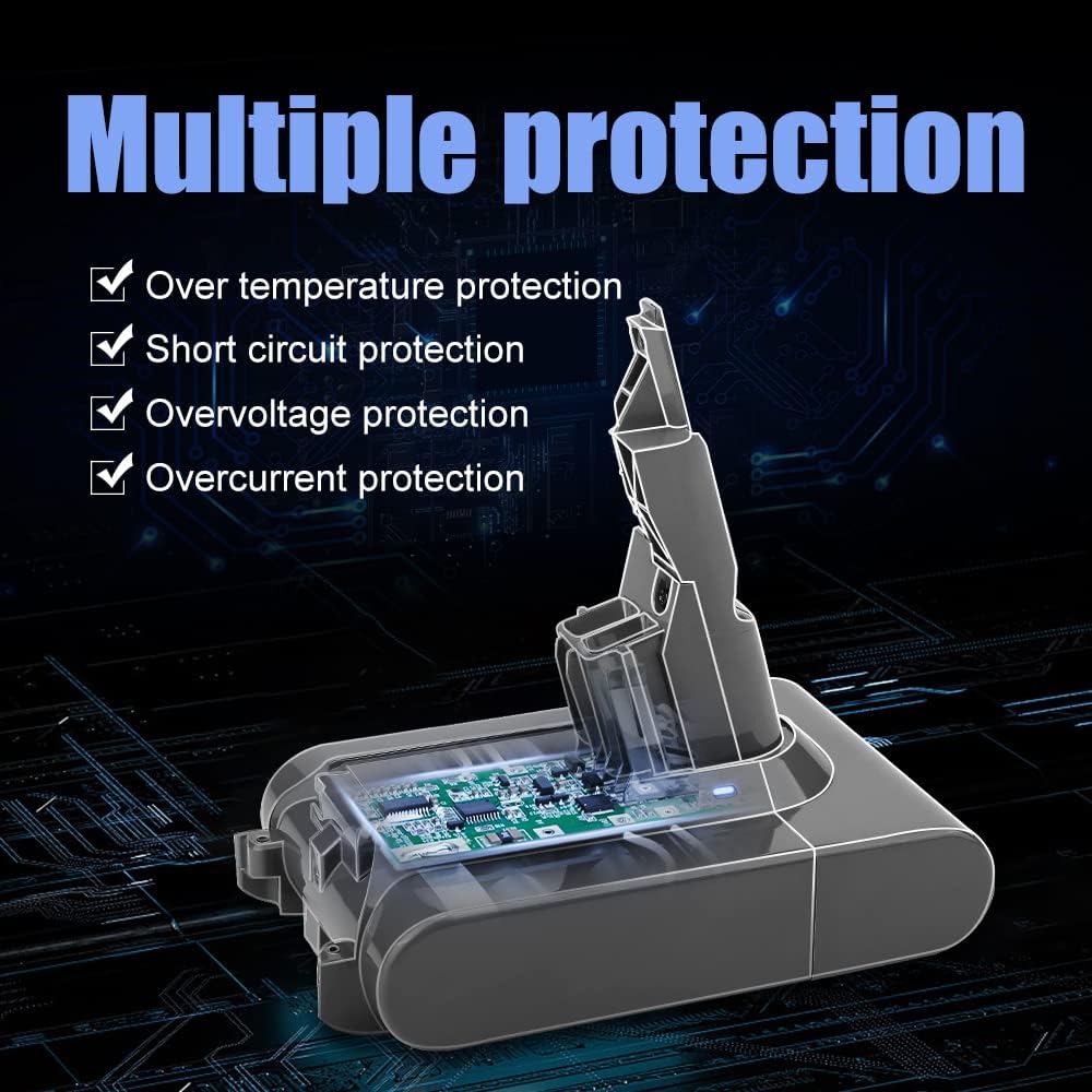 - 【Sicher und effizient】Der Akku wurde präzise für eine einfache Installation und Entnahme konzipiert und ist perfekt mit dem Dyson V6 Staubsauger kompatibel. Das eingebaute intelligente Schutzsystem verhindert Überladung, Überstrom und