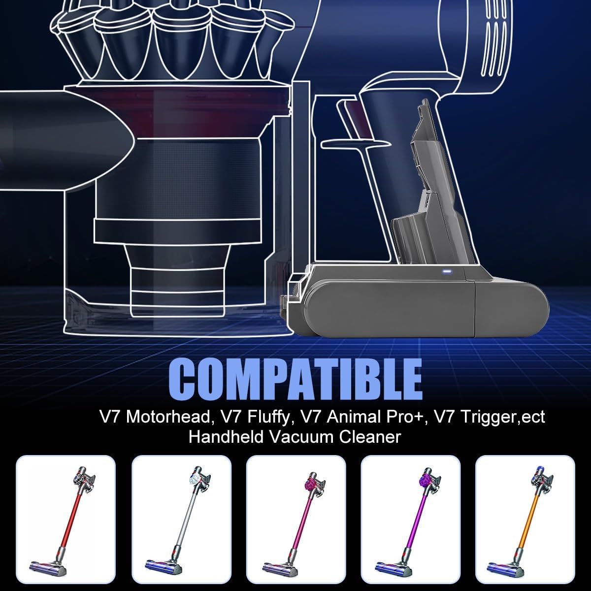 - 【Vollständig kompatibel】Kompatibel mit Dyson V7 Fluffy V7 Animal V7 Trigger V7 Trigger+ V7 Motorhead Staubsauger Akku Handstaubsauger.