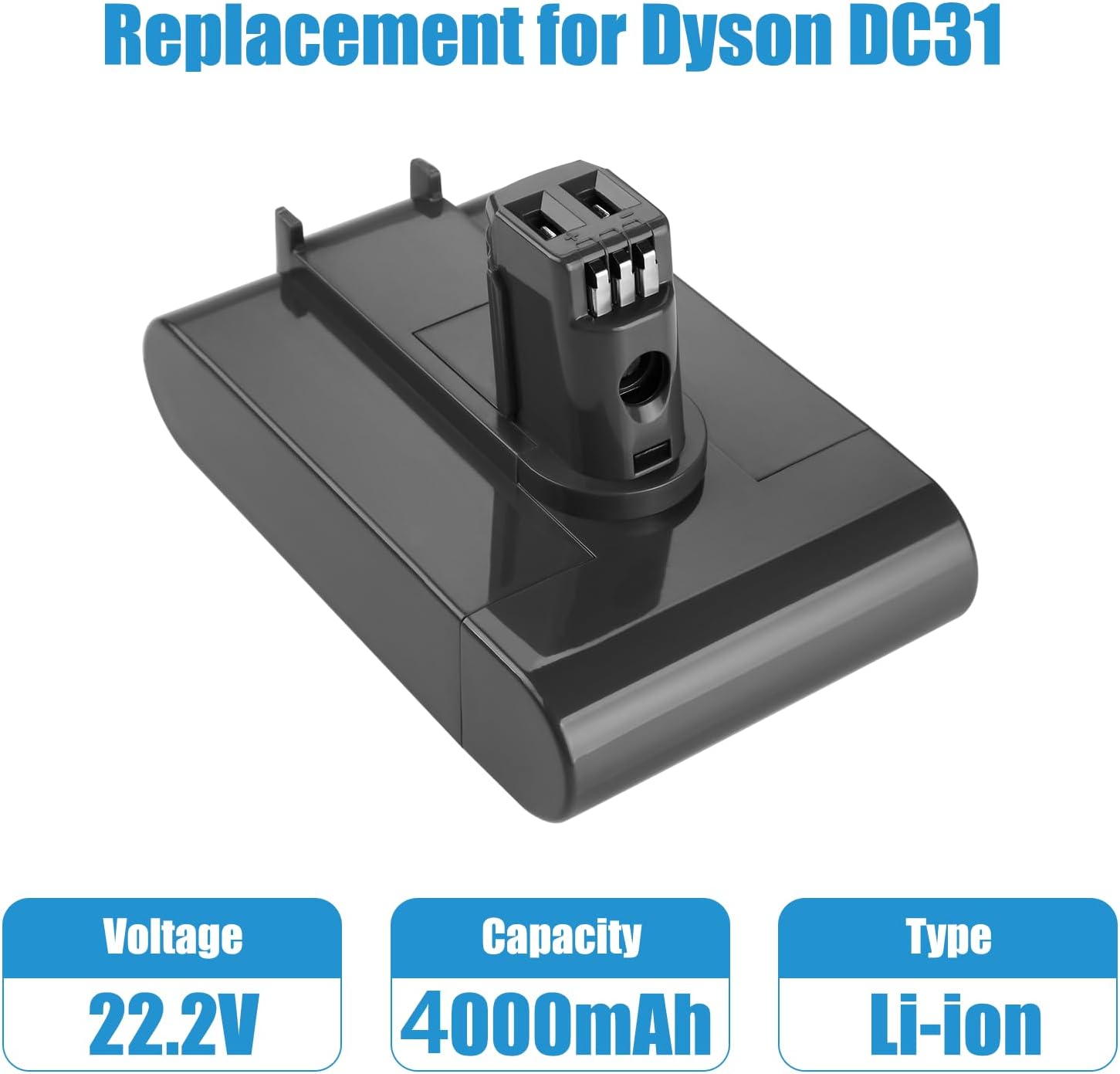 - 【Ersatzakku für Dyson DC31】Spannung:22.2V, Kapazität:4000 mAh, Typ:Li-Ion, Funktion und Design sind die gleichen wie beim Original, geeignet für Dyson Typ A.