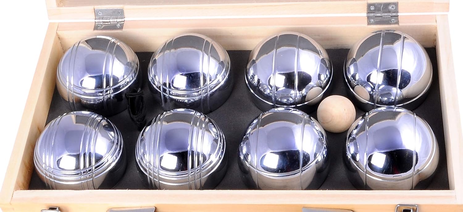 • Produkt 1: Set Petanque-Kugeln aus Vollmetall in einer schönen Holzkiste.
