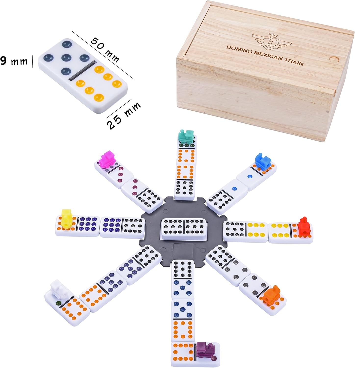- Der mexikanische Dominozug ist ein Familienspiel, das Erwachsene und Kinder anspricht. Verspielt, mit dicken Dominosteinen, lieben Kinder es, bunte kleine Züge auf den Dominosteinen zu positionieren.