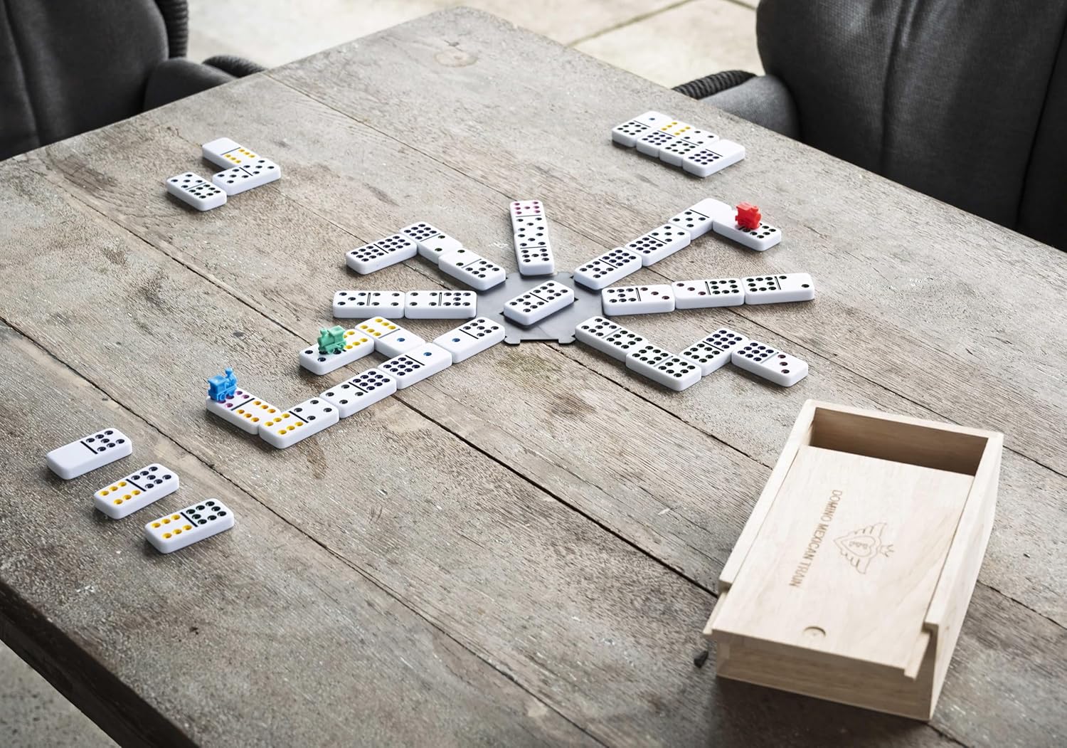 - Dieses hübsche Domino-Spiel von höchster Qualität wird mit einer rohen Massivholzkiste geliefert. Die Double 12-Version wird für ein Spiel zwischen 2 und 8 Spielern empfohlen.