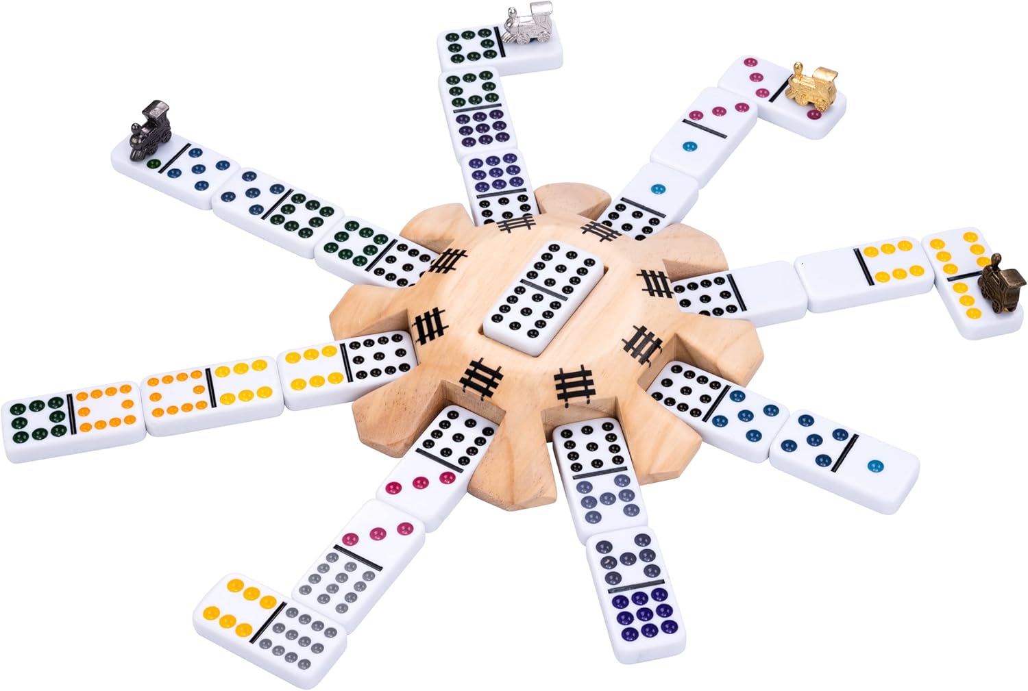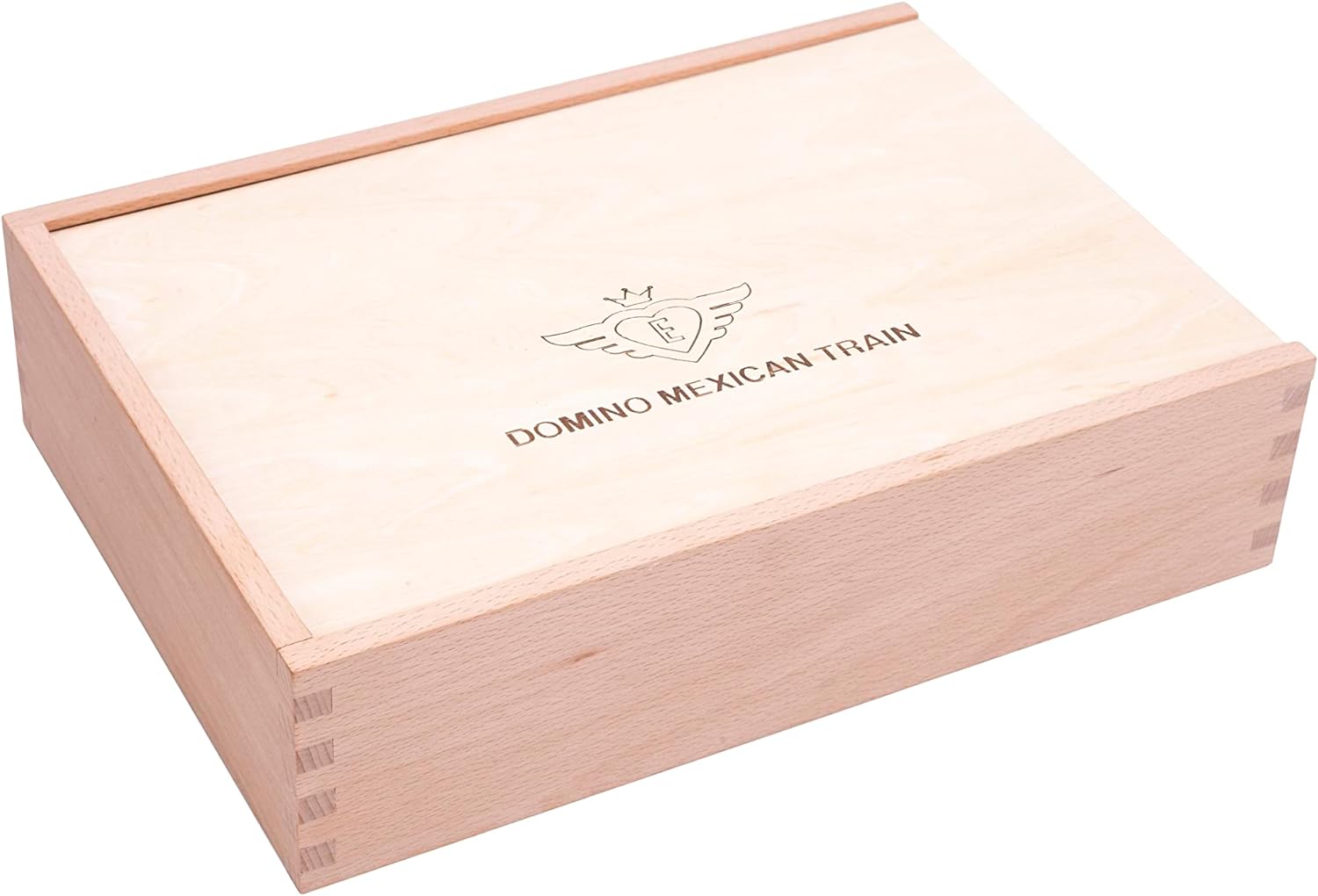 Engelhart - Domino Mexikanischer Zug D12 Deluxe in Einer Box aus Buchenholz + Punkteblock + Bahnhof