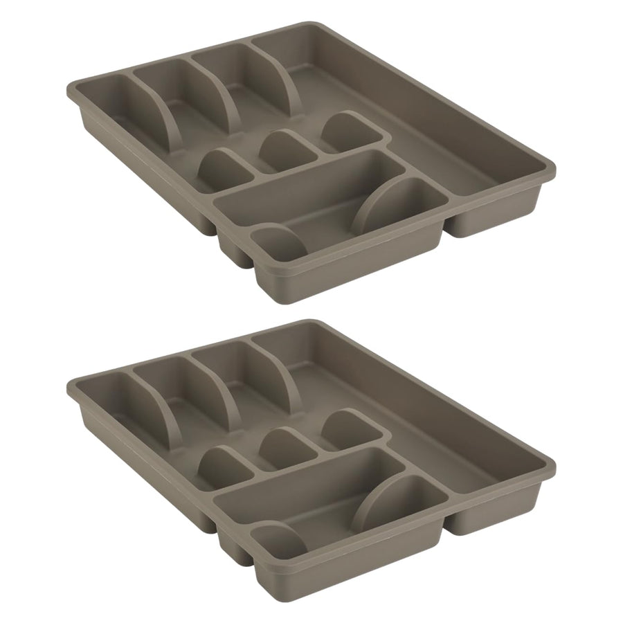 - ENGELLAND - 2 x Robuster Besteckkasten aus BPA-freiem PP-Kunststoff in edlem und simplem Design, Farbe: Braun