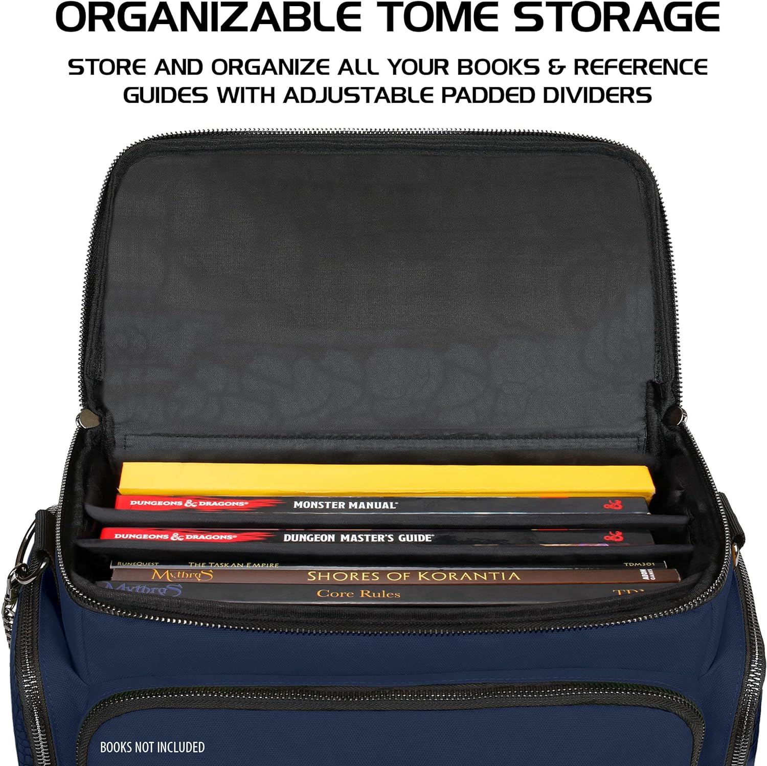 - TASCHE FÜR IHRE RPG-BIBLIOTHEK: Bewahren Sie 4–8 Bücher, Blätter und Referenzmaterial im geräumigen Hauptfach auf, komplett mit einer gepolsterten Trennwand für individuelle Organisation