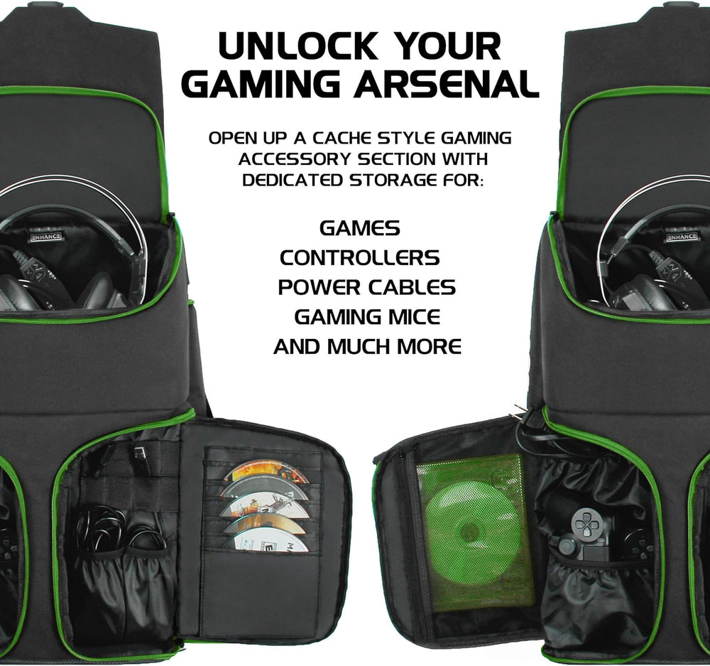 - GAMING RUCKSACK FÜR KONSOLEN UND LAPTOPS: Verfügt über ein eigenes Ablagefach für Konsolen, Laptops und Tastaturen aller Grössen mit einer gepolsterten Trennwand.