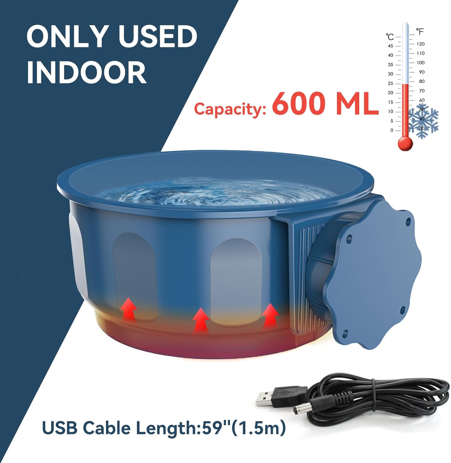 - Diese Schüssel hält das Wasser aufgrund der niedrigeren Leistung nicht vom Einfrieren ab, hält nur Wasser im Innenbereich warm, daher wird nicht empfohlen für extrem kaltes Wetter.