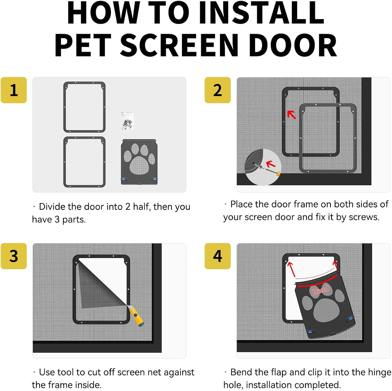 - Katzenklappe Fliegengittertür besteht aus hochwertigem ABS-Material, stark und langlebig. Entworfen mit einem süssen Hundepfotenmuster.