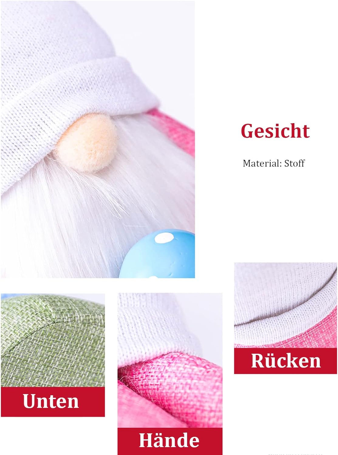 - 【Hochwertige Materialien】Der Körper und die Mütze des Ostern Deko Wichtel sind aus weichem Stoff gefertigt, und die Puppe ist innen komplett mit Baumwolle gefüllt. Der lange weisse Bart ist aus Fasern gefertigt und fühlt sich weich und angenehm