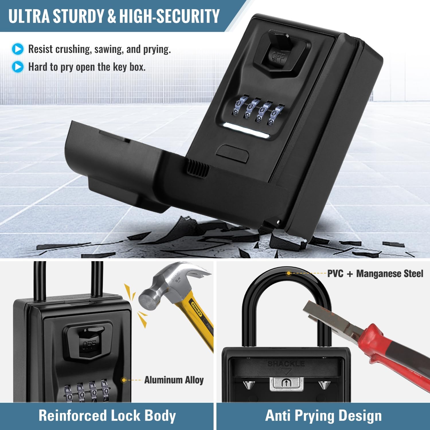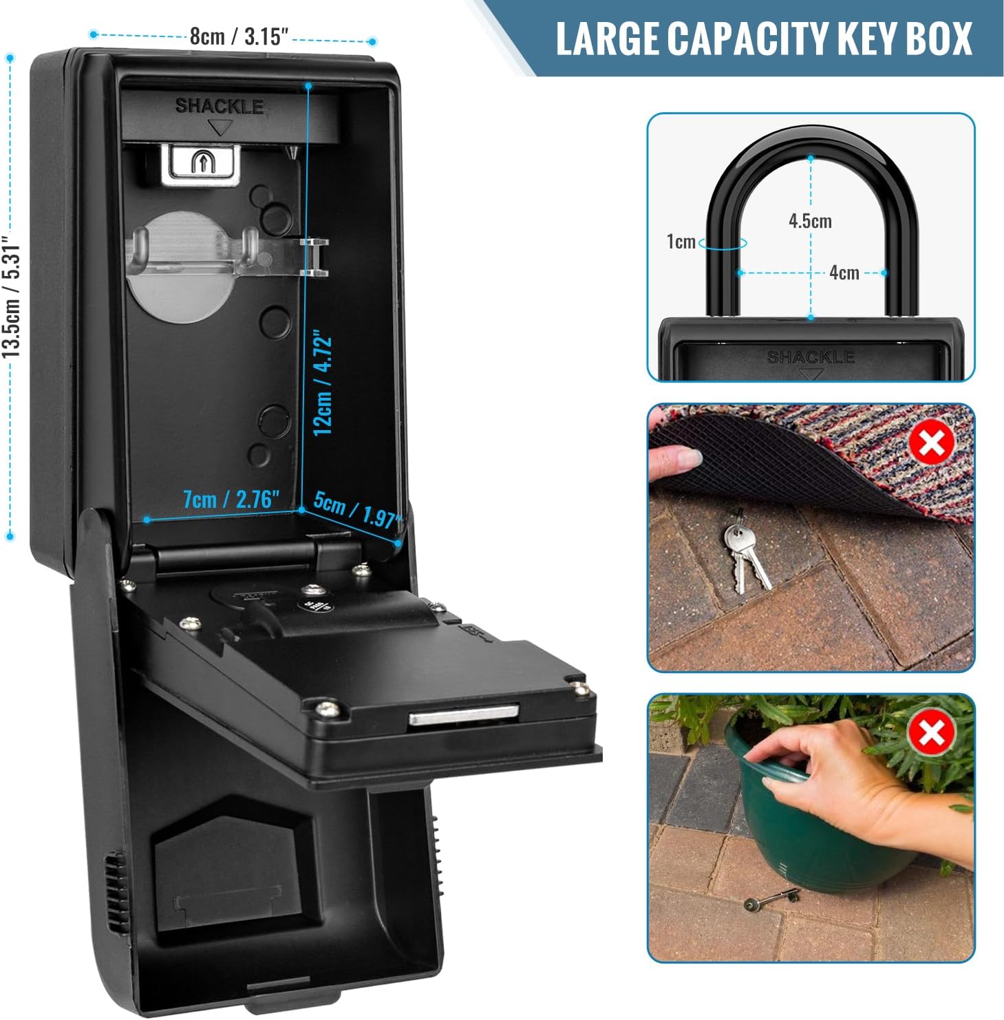 • 🏠【Breites Anwendungsspektrum】Dieser Gross Schlüsselsafe mit Code für Draussen ist rost-, korrosions-und witterungsbeständig, perfekt für den Innen-und Aussenbereich, wie z.B. Häuser, Zäune, Büros, Garagen, Wohnheime, Turnhallen,