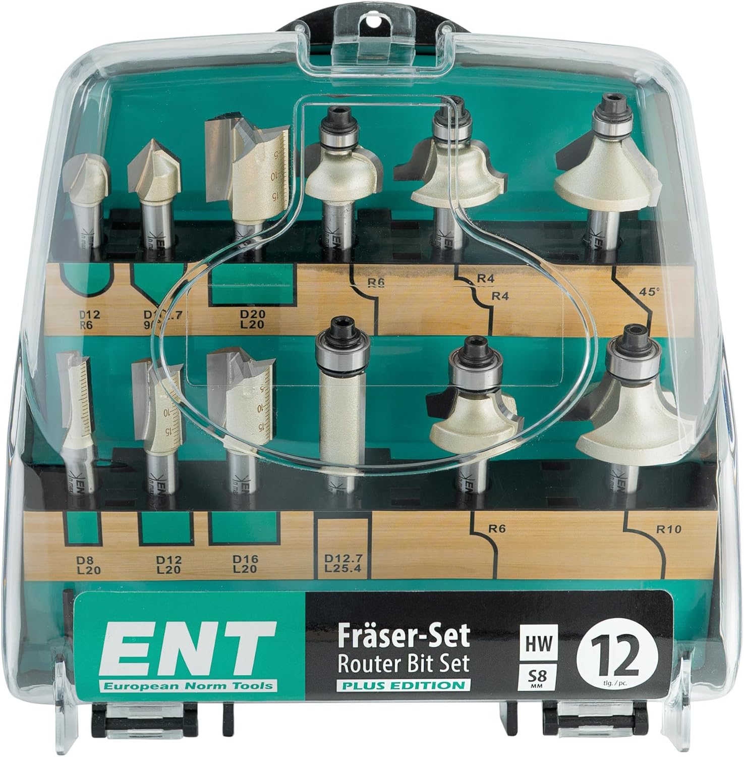 - Dieses ENT Fräser-Set bietet Ihnen eine Auswahl von 12 verschiedenen Fräsern aus sieben unterschiedlichen Fräser-Kategorien. Das universell einsetzbare Fräser-Set ist durch die bewährte Langlebigkeit sehr beliebt bei Heimwerker und Handwerker, in
