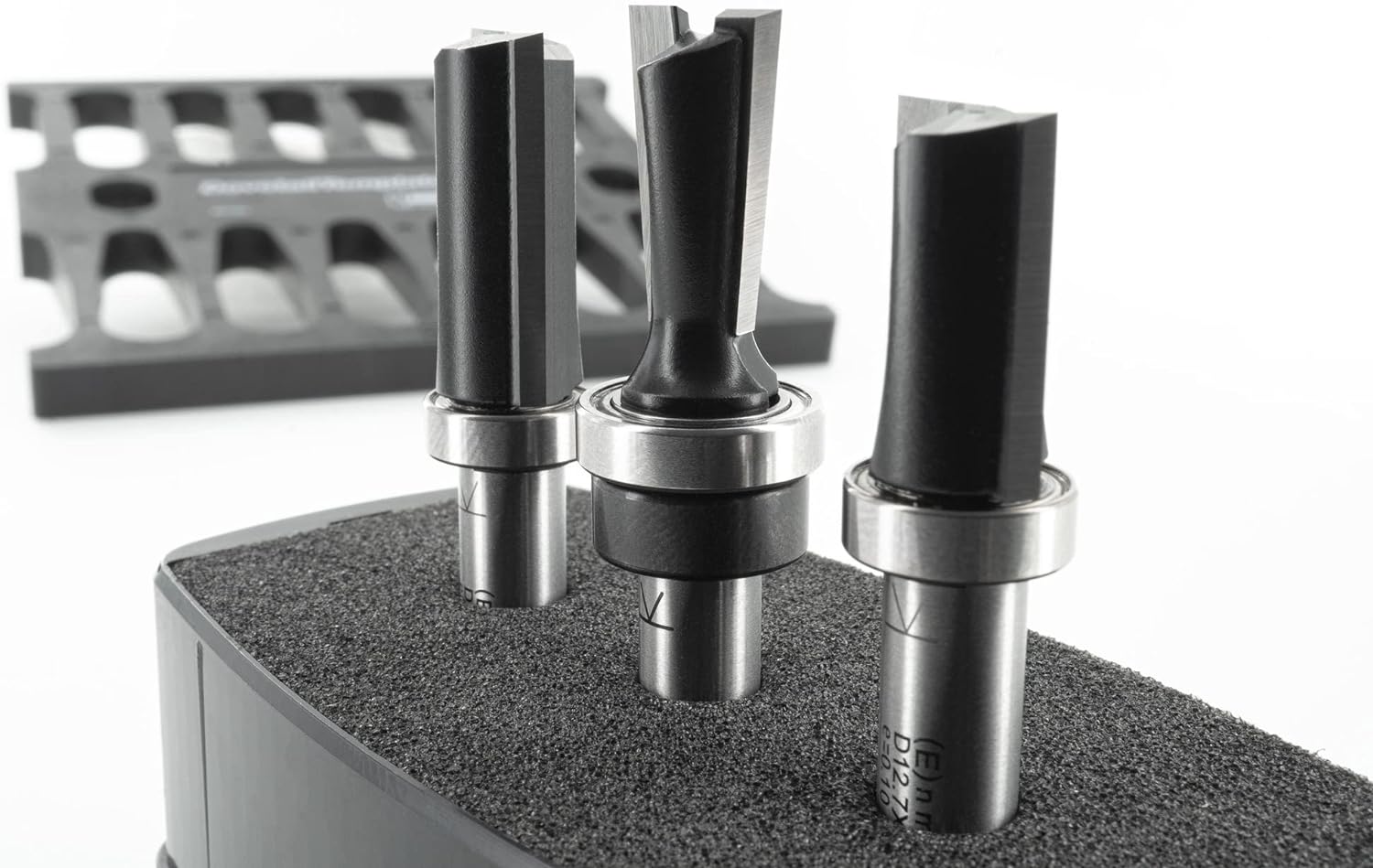 - 3-teiliges Fräser-Set optimiert zum Herstellen stabiler Zinkenverbindungen und Schwalbenschwanzverbindungen für den Einsatz mit der Zinkenschablone der Firma Milescraft. Im Set enthalten sind zwei Bündigfräser und ein Zinkenfräser für