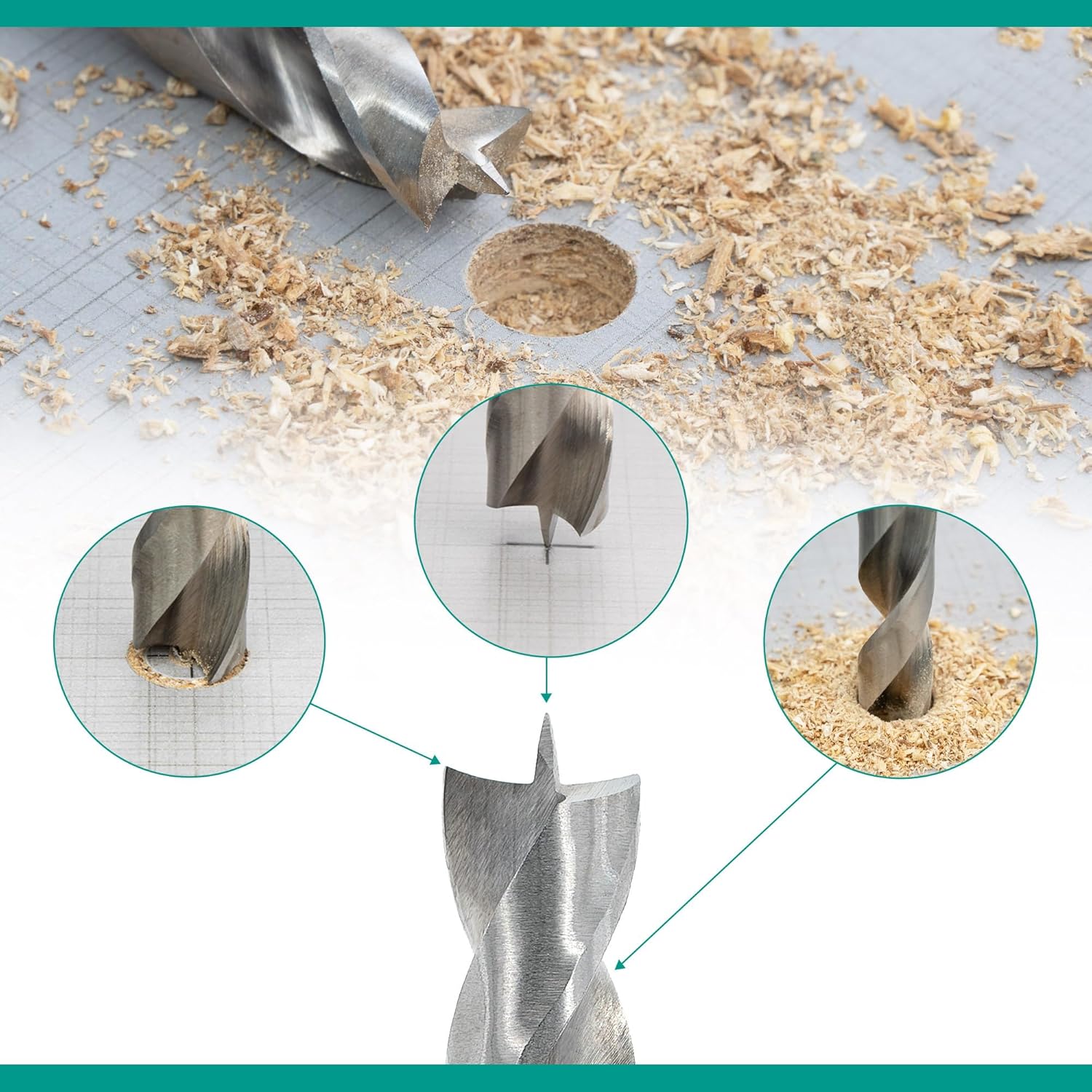 • Rundlaufgenauigkeit - Durch die geschliffene Fertigung ergibt sich eine verbesserte Rundlaufgenauigkeit im Vergleich zu flachgewalzten Holzbohrern, da keine Verbiegung während der Fertigung auftritt.