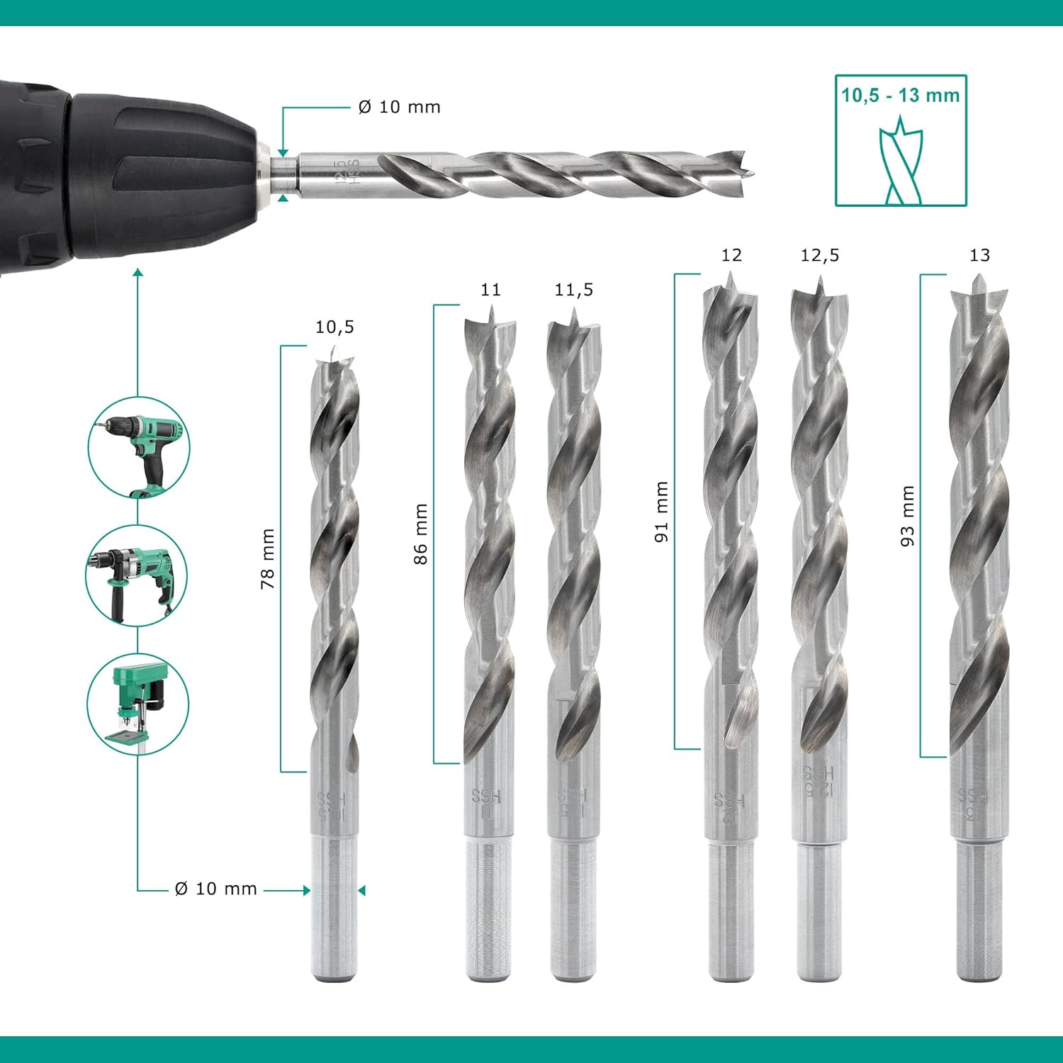 • Schaft - Die Bohrer haben einen Schaft von 1 - 10 mm. Bohrer ab 10,5 mm Durchmesser haben einen abgesetzten 10 mm Schaft, so können Sie jeden Bohrer auch an einer Handbohrmaschine oder Akkubohrmaschine nutzen.