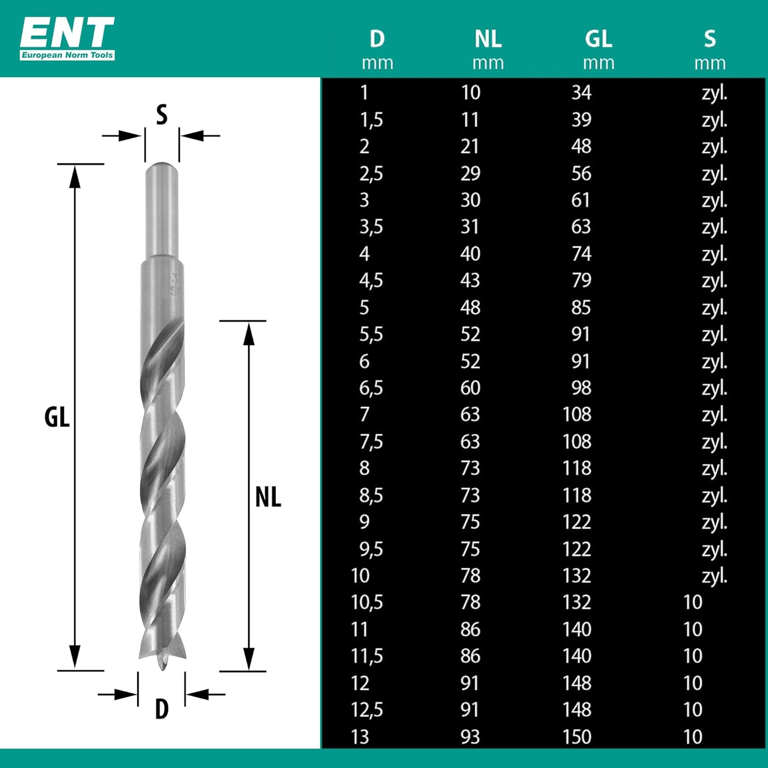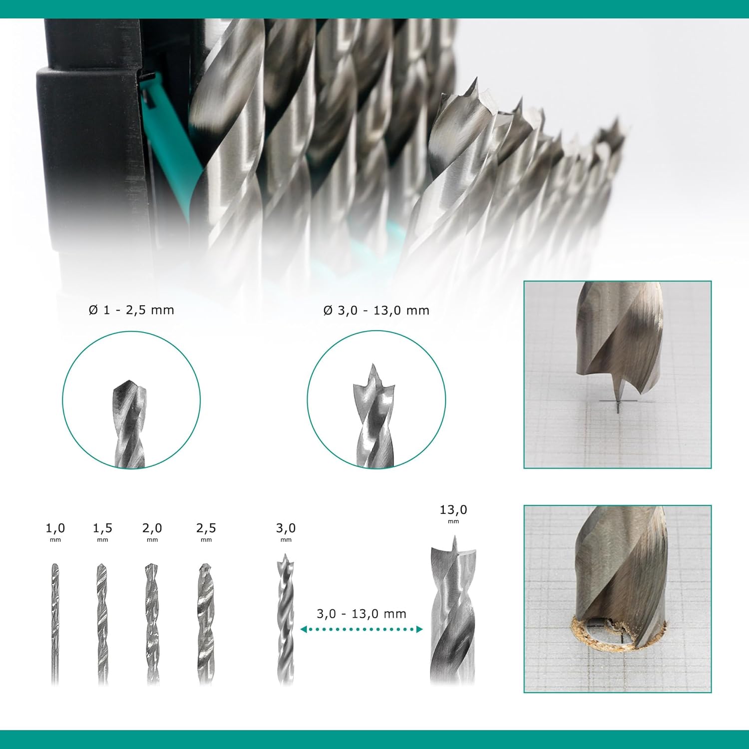 ENT 09225 25-tlg. HSS-G Holzbohrer-Set - 1-13 mm - in 0,5mm Schritten