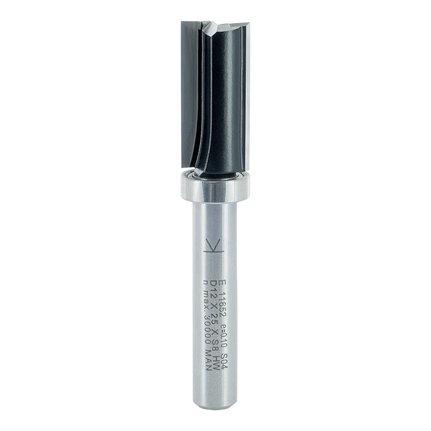 - Grundschneidender und flankenschneidender Bündigfräser, mit zwei Schneiden und auswechselbarem Kugellager. Zum Bündigfräsen von Kanten, zum Entfernen von überstehenden Furnieren und zum Einsatz mit Schablonen geeignet. Durch den innovativen Schaft