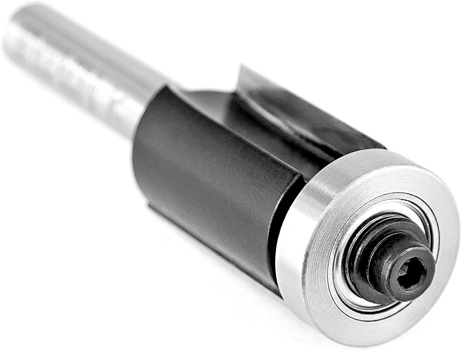 - Flankenschneidender Bündigfräser mit zwei Hartmetall-Schneiden und austauschbarem Kugellager an der Stirn. Zum Bündigfräsen von Kanten und zum entfernen von überstehenden Furnieren. Im Einsatz mit Schablonen können 1:1 Kopien Ihrer Werkstücke und