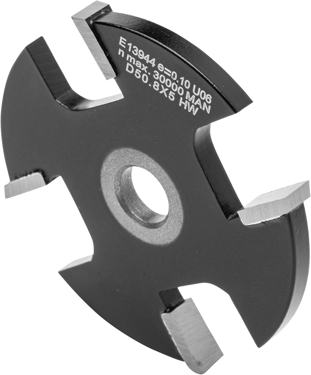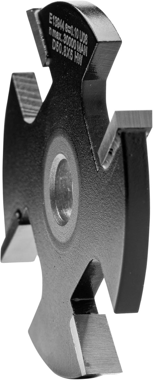 - Vier gerade Schneiden, umfang- und flankenschneidend. Zum Nuten und Schlitzen. Einsatz auf Spindeln bzw. Fräsdornen für Bohrung 8 mm.