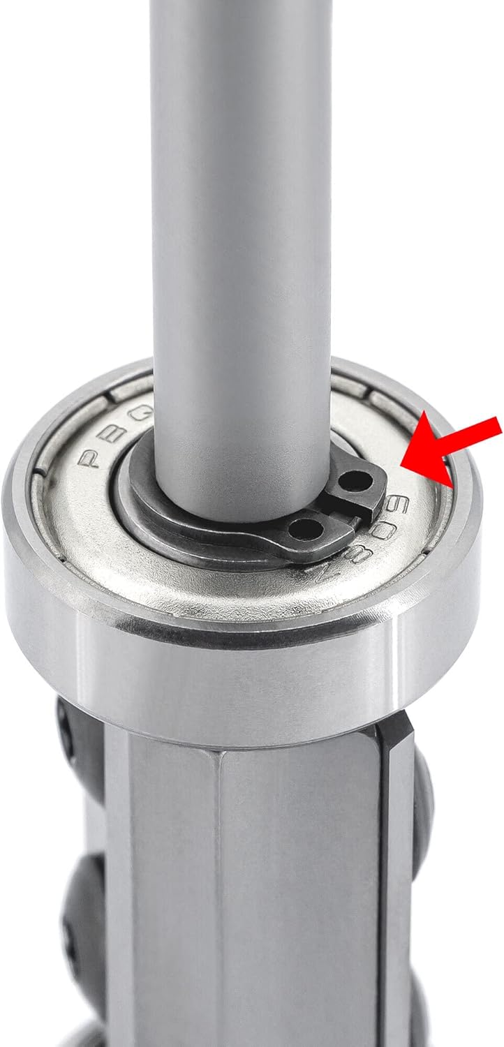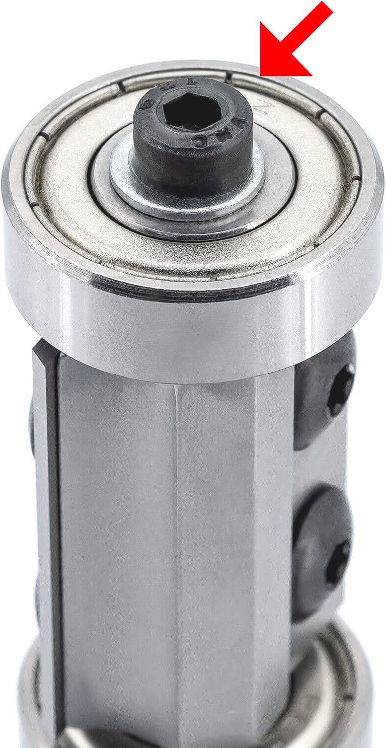 - Flankenschneidender Bündigfräser mit zwei achsparallelen Wendemessern und zwei auswechselbaren Kugellagern. Durch die beiden Kugellager ergeben sich mehr Möglichkeiten beim Anfahren des Werkstücks, zudem können viele unterschiedliche Plattenstärken