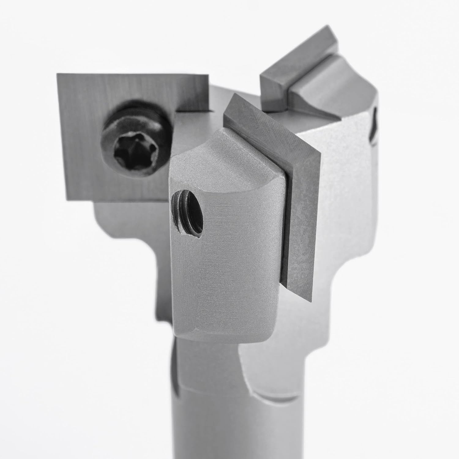 - Für qualitativ hochwertige Schnittergebnisse sorgen die drei Wendemesser an der Stirnseite, die jeweils einzeln gewechselt werden können. Die Hartmetall-Wendemesser können um 90° gedreht werden, um neue Schneiden zu erhalten.