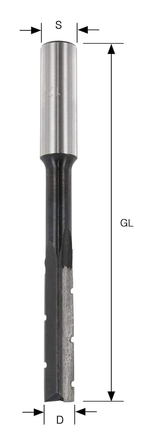 - Rechtsdrehender Langlochfräsbohrer aus Werkzeugstahl, zum Bohren und Fräsen von Schlitzen in Weichholz und Hartholz. Der Langlochfräsbohrer verfügt über zwei gerade Hauptschneiden mit eingearbeiteten Spanbrechernuten. Die Spanbrechernuten