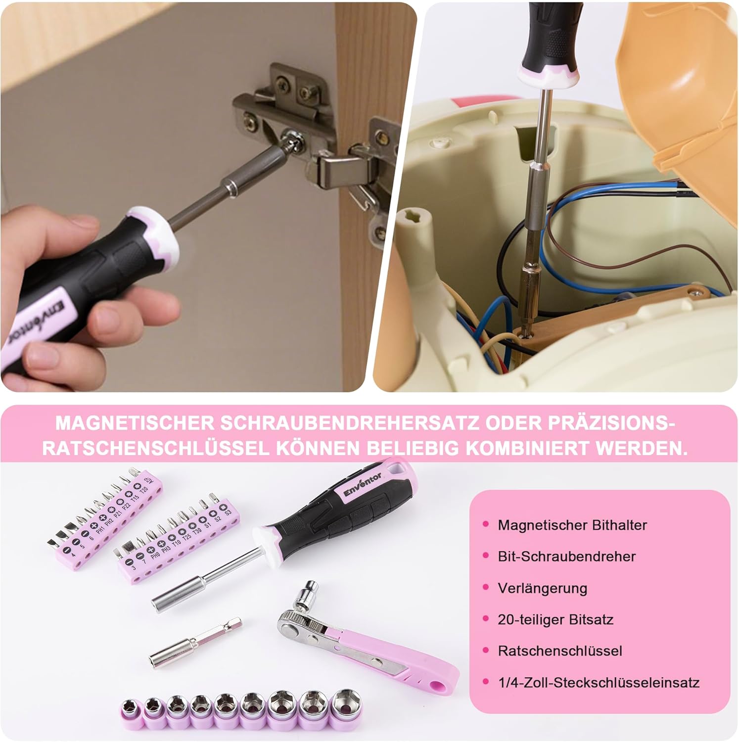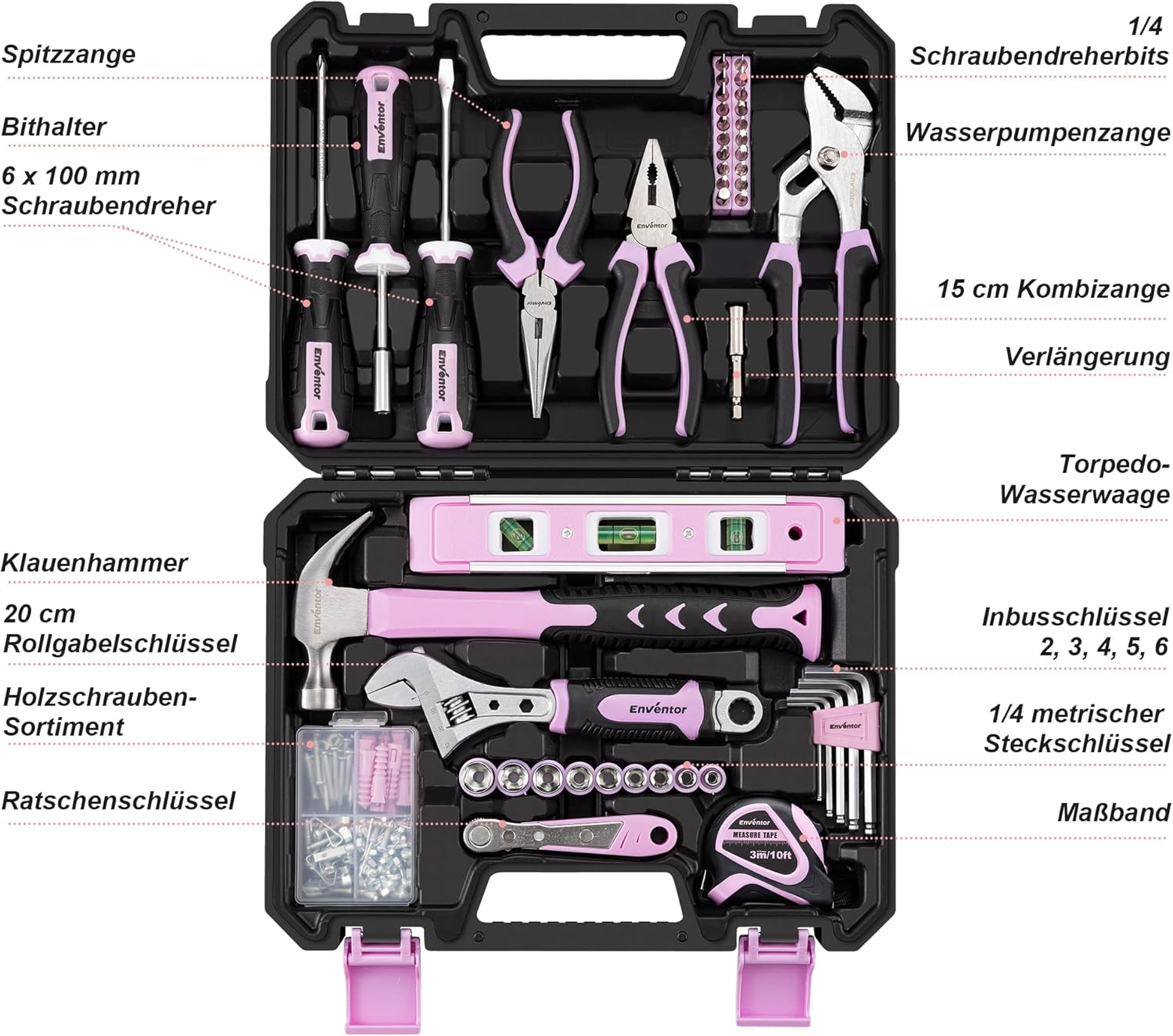 - ◕【Multifunktionaler Werkzeugkasten】 Enventor Werkzeugkoffer enthält eine Reihe von Arbeitswerkzeugen, die Ihren täglichen Bedarf decken und sich perfekt für einfache Heimwerkerarbeiten eignen, wie den Zusammenbau von Möbeln, die Wartung von