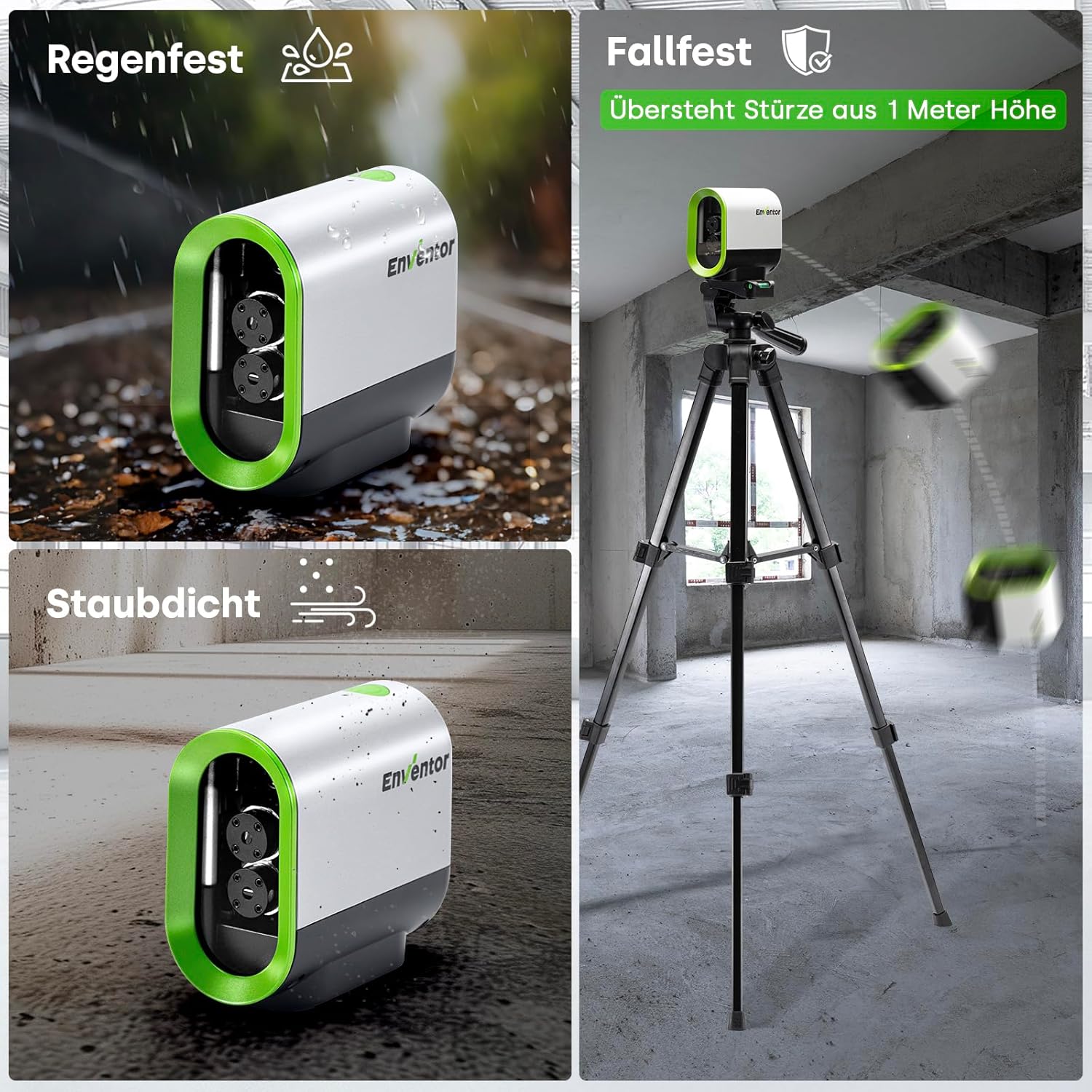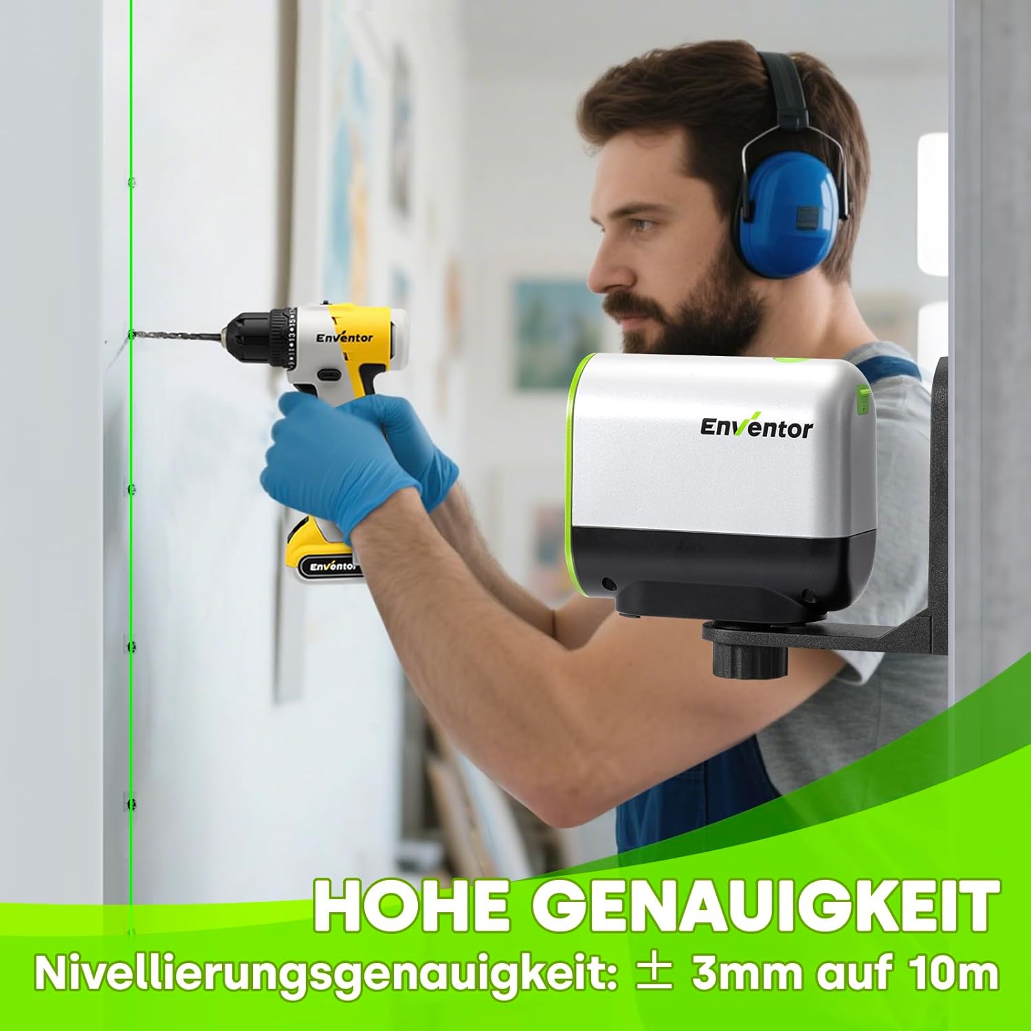 ENVENTOR Kreuzlinienlaser Grün, 50m Selbstnivellierend Laser Wasserwaage, Linienlaser mit Dualem Las