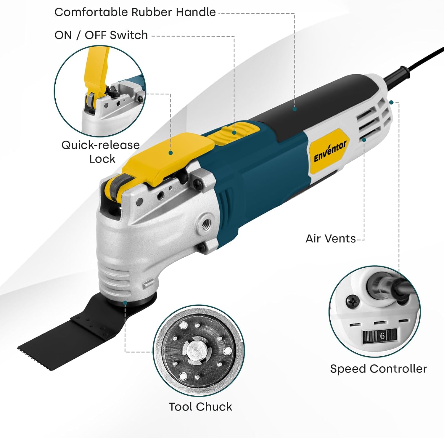 ENVENTOR Oszillationswerkzeug, 300W Multifunktionswerkzeug mit 28 Zubehör, 6 Variable Geschwindigkei