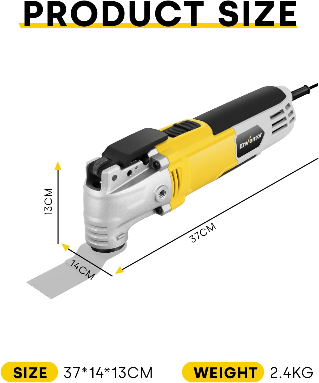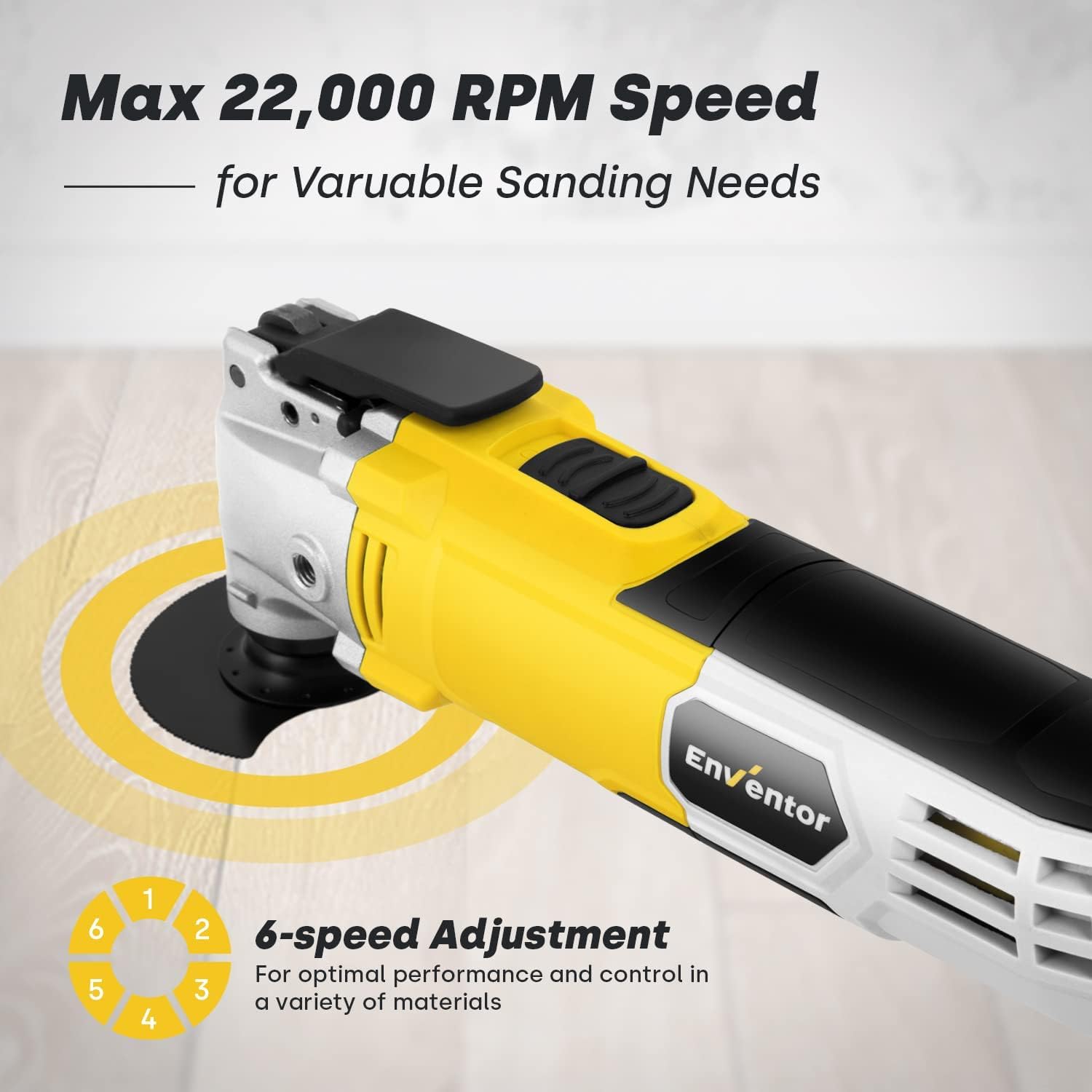 - 【ENVENTOR 300W Oszillationswerkzeug】Der 300 W Motor bietet Ihnen eine starke und stabile Leistung, 6 variable Geschwindigkeiten für eine bessere Kontrolle bei allen Aufgaben. Hohe Geschwindigkeit zum Sägen, Schleifen und Polieren von Stein und