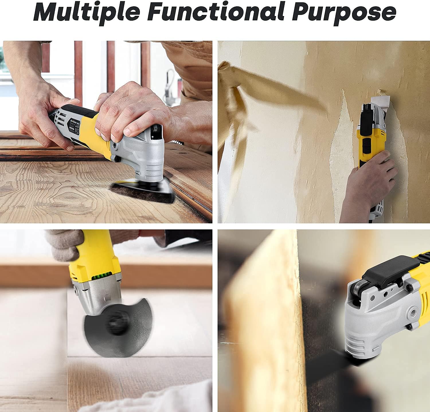 - 【3° Oszillationswinkel】 3˚ Oszillationswinkel Vibrationsschnitt für längere, tiefere Schnitte und mehr Effizienz. Bietet Ihnen optimale Schnittleistung und Komfort. Diese oszillationssäge kann Holz, Rohre, Fliesen, Nägel, Schrauben,