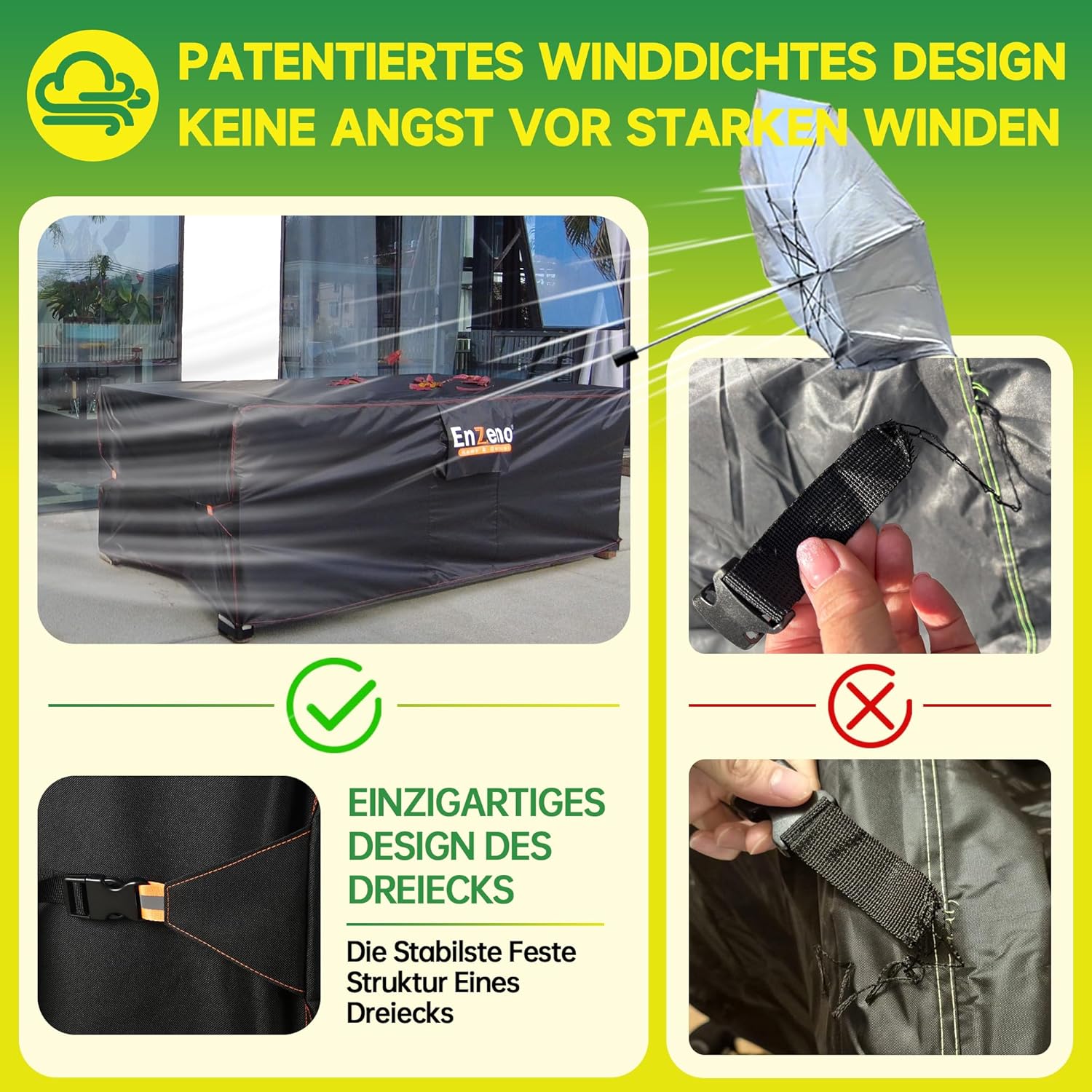 - 【Gartenmöbel Abdeckung Wasserdicht 】Ein neues Nano-Dichte Oxford-Gewebe mit speziellen wasserdichten Klebestreifen an den Fugen hinzugefügt. Nach der Prüfung kann das Produkt 10000pa Wasserdruck widerstehen und für 1800 Stunden trocken bleiben,