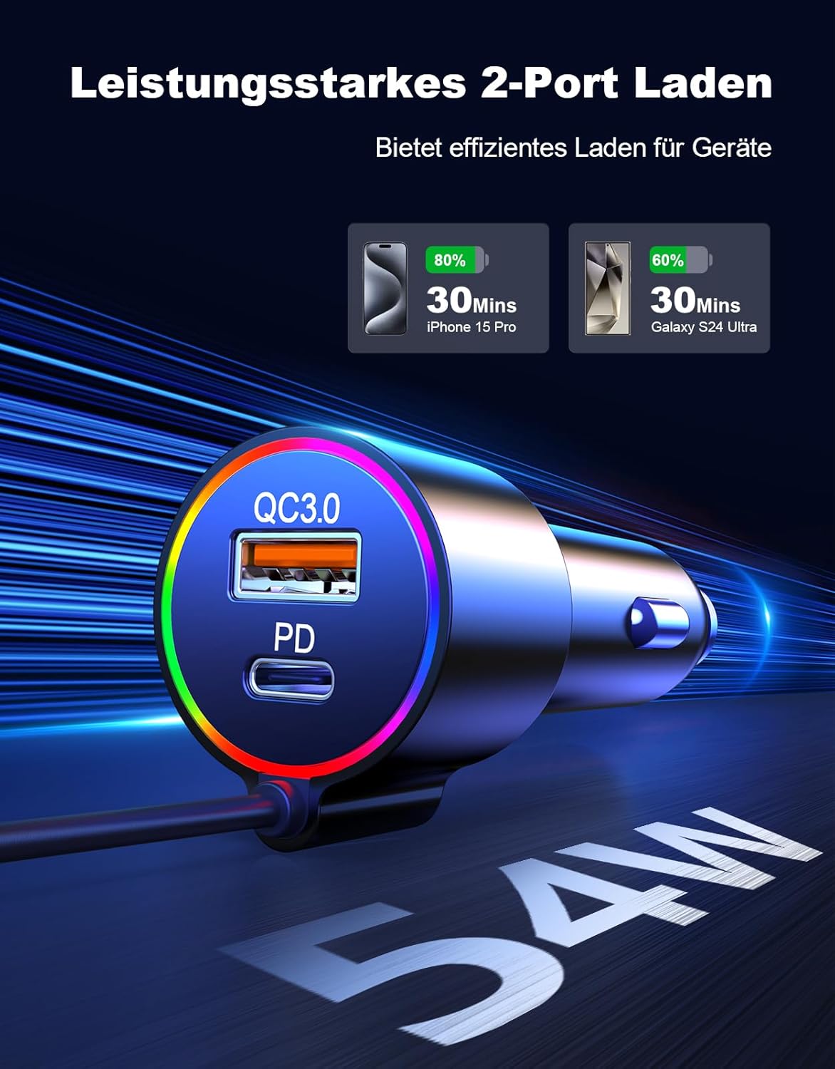 - 【54W Schnellladung】Ausgestattet mit PD3.0 36W und USB-A QC3.0 18W Schnellladeanschlüssen bietet der Bluetooth Adapter Auto eine verbesserte Leistungsabgabe, was zu schnelleren Ladegeschwindigkeiten für Ihre Geräte führt. Im Vergleich zu