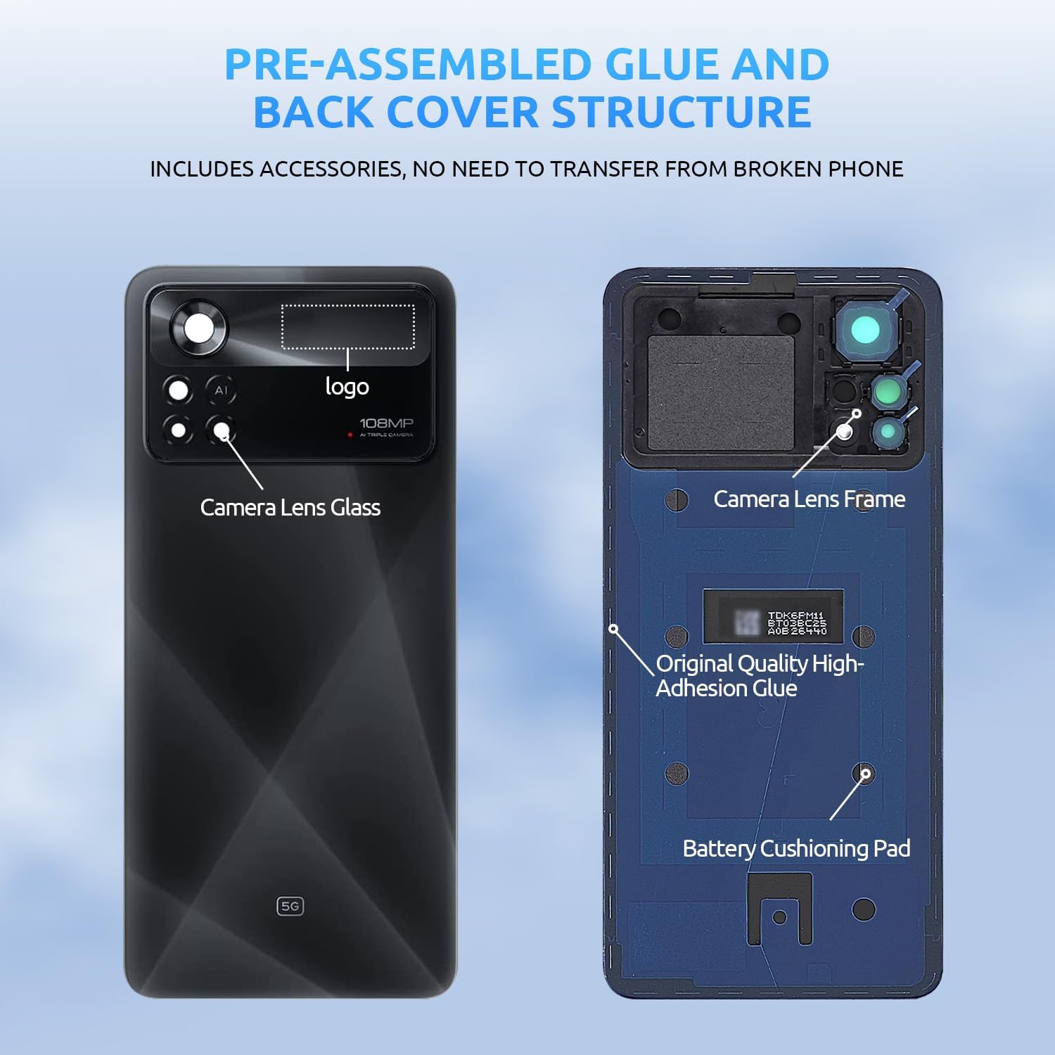 - Die Akkuabdeckung aus Glas ist kompatibel mit [Xiaomi Poco X4 Pro] (alle Versionen).
