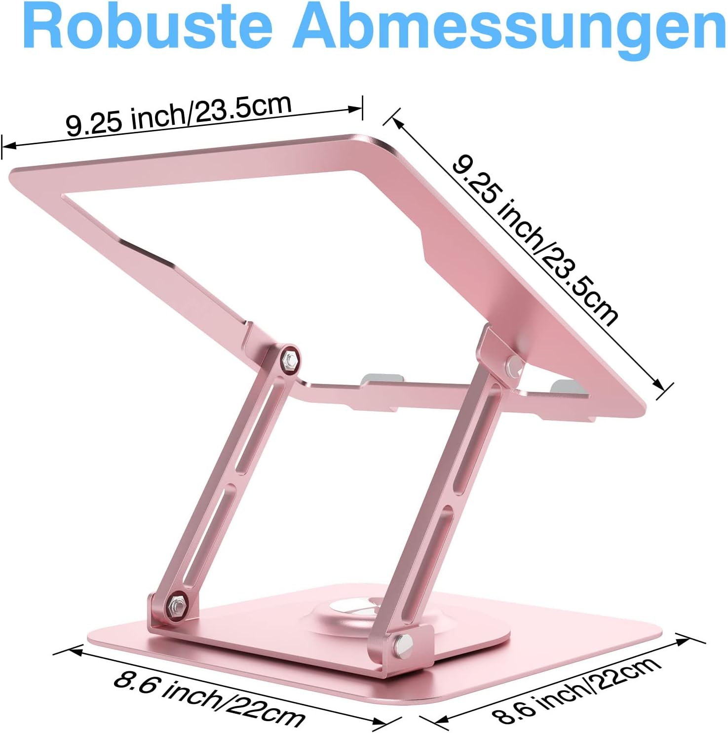 - Stabil und Tragbar: Der Laptop Ständer besteht aus einer dicken Aluminiumlegierung. Die Stütze ist sehr robust, mit einer maximalen Tragfähigkeit von 18 Lbs (8.5 kg) an der Oberseite. Der Laptop Ständer ist nicht nur stabil, sondern auch rostfrei.