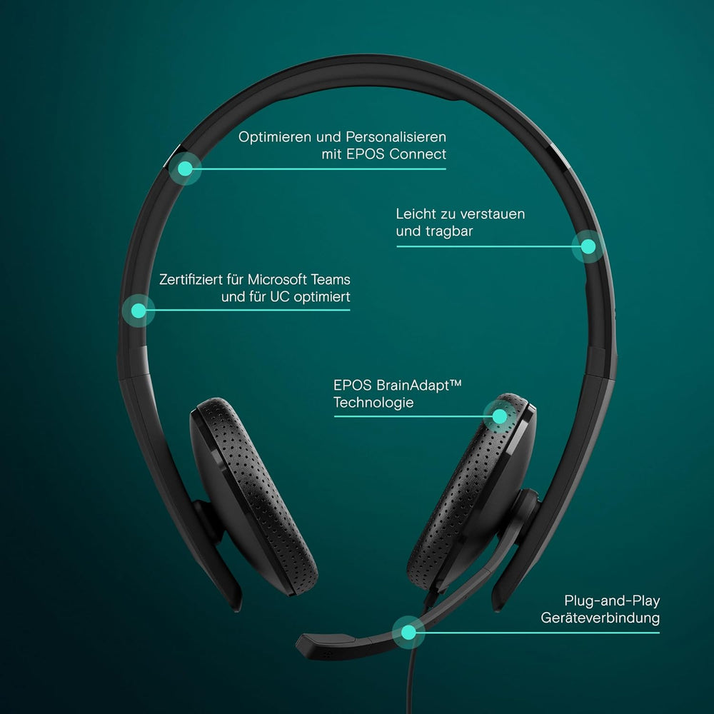 - EPOS BrainAdapt-TECHNOLOGIE - EPOS BrainAdapt ist eine Kombination aus bahnbrechenden Technologien, die gemeinsam die kognitive Leistung verbessern. Headsets, die auf der EPOS BrainAdapt-Technologie basieren, wurden entwickelt, um die natürliche